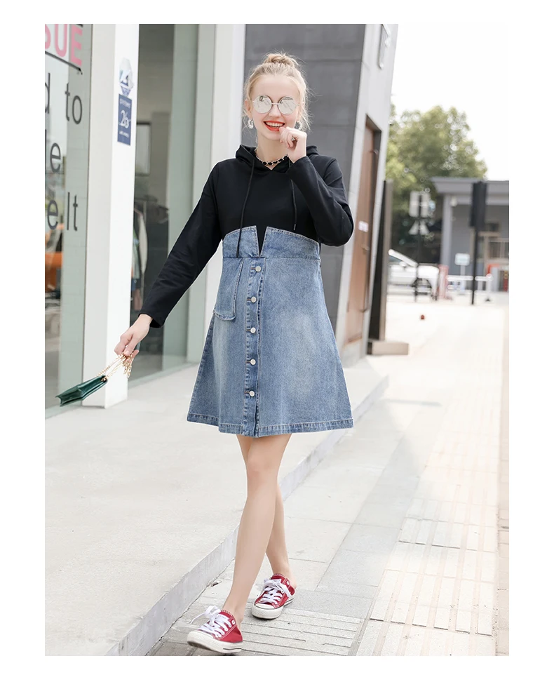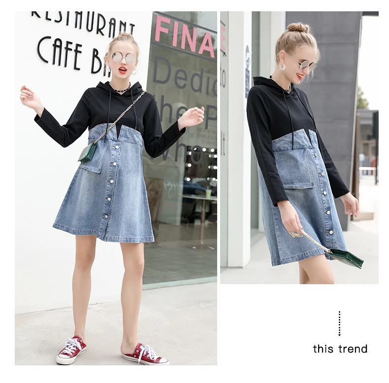 Осеннее платье для беременных; модное джинсовое платье для беременных; платье с капюшоном для беременных; Одежда для беременных; платье JOYRAY. B
