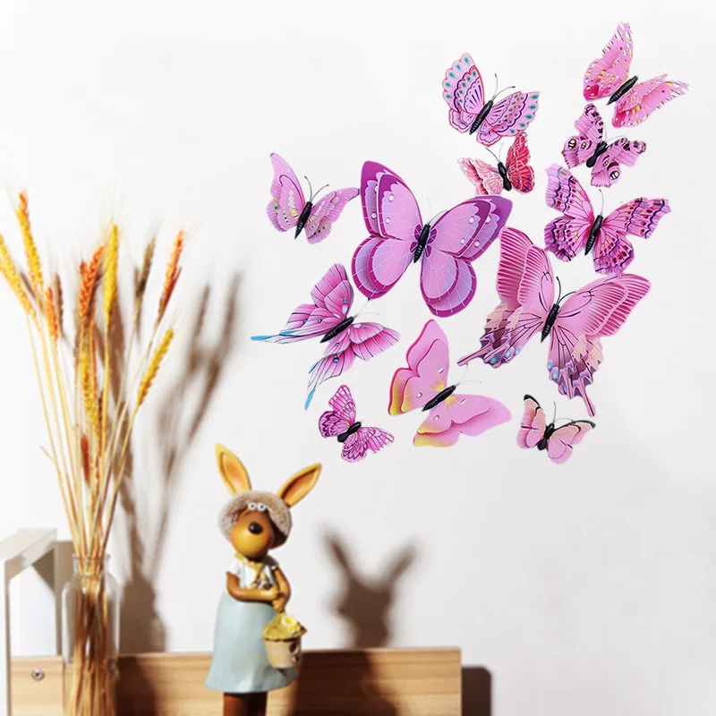 12PCs 3D Butterfly Wall Stickers Pink Vivid Butterfly Wall Decoration Kid's Room Decor Stickers Stereoscopic Bedroom Decor