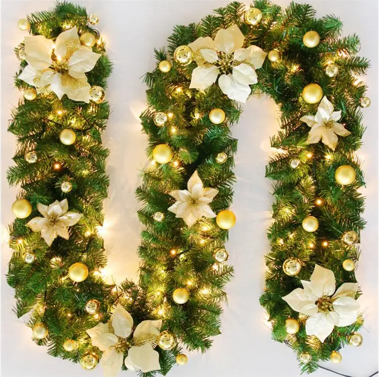 2,7 м искусственная зеленая Рождественская гирлянда, Рождественская домашняя Рождественская вечеринка, украшение из сосны, подвесное из ротанга, украшение для камина