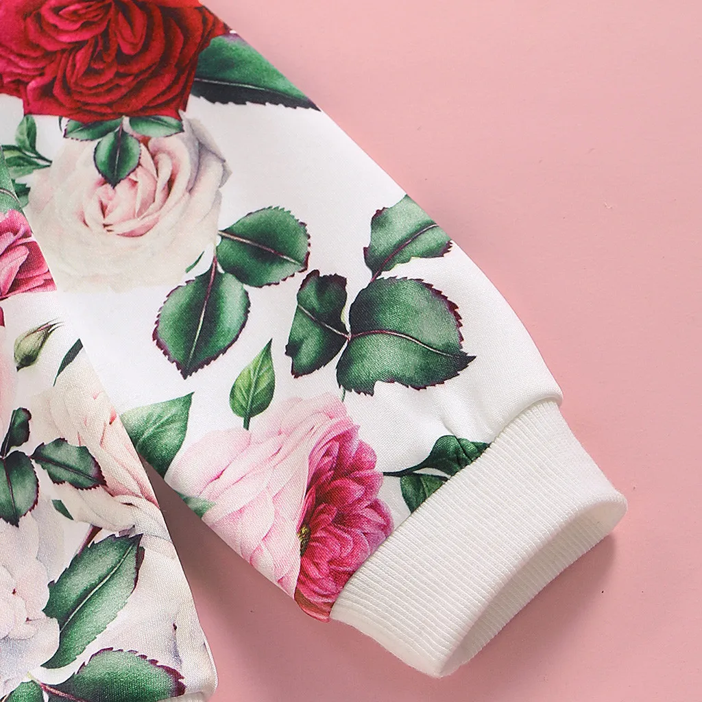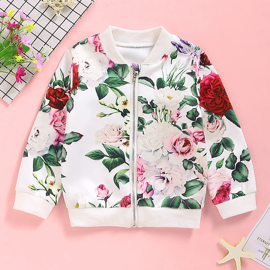 Топы на молнии с длинными рукавами и цветочным принтом для маленьких девочек; Толстовка; Куртка