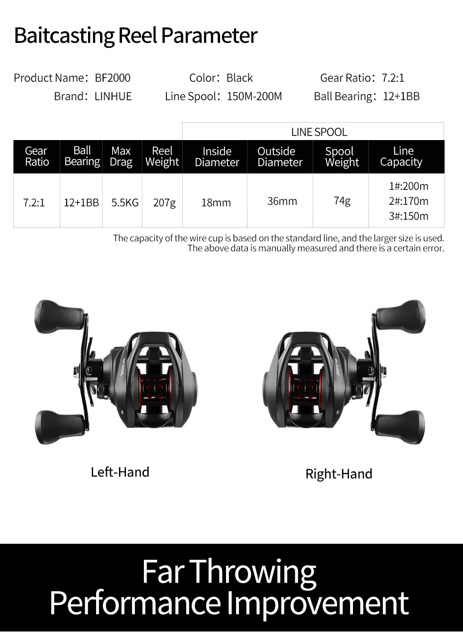 Linnhue BF2000 катушка для заброса приманки высокое Скорость 7,2: 1 Шестерни соотношение 12 + 1BB Fresh/морской Электродвигатель с магнитным тормозом, Системы Сверхлегкий Рыболовная катушка