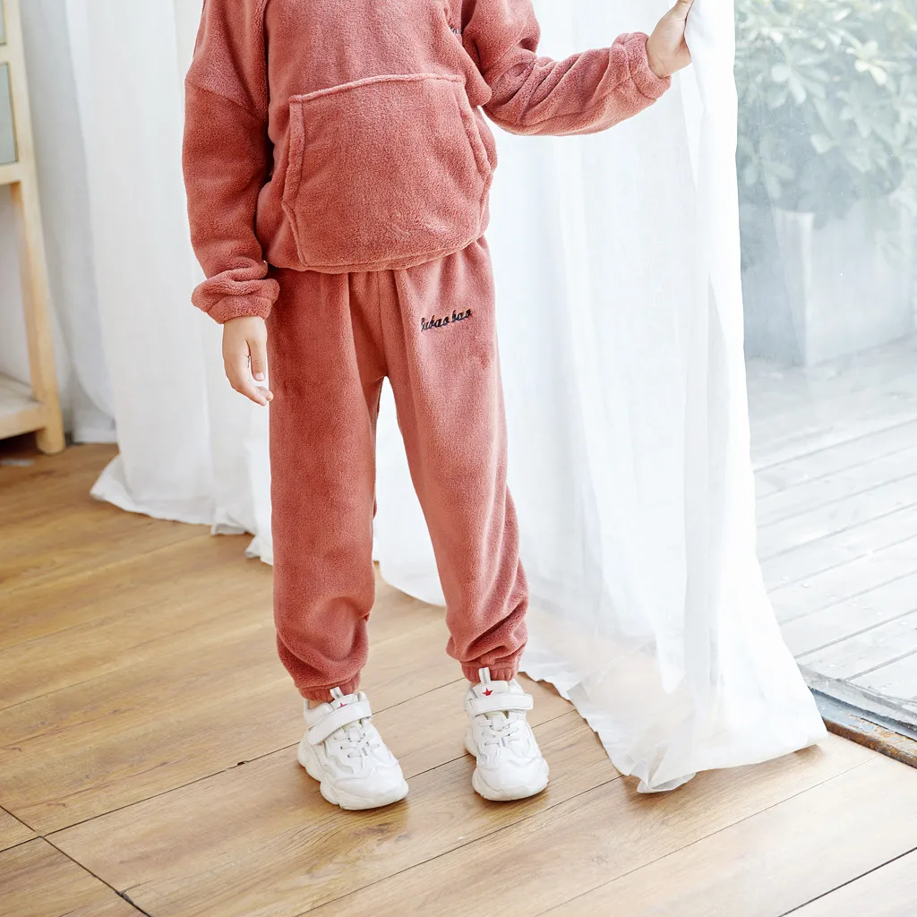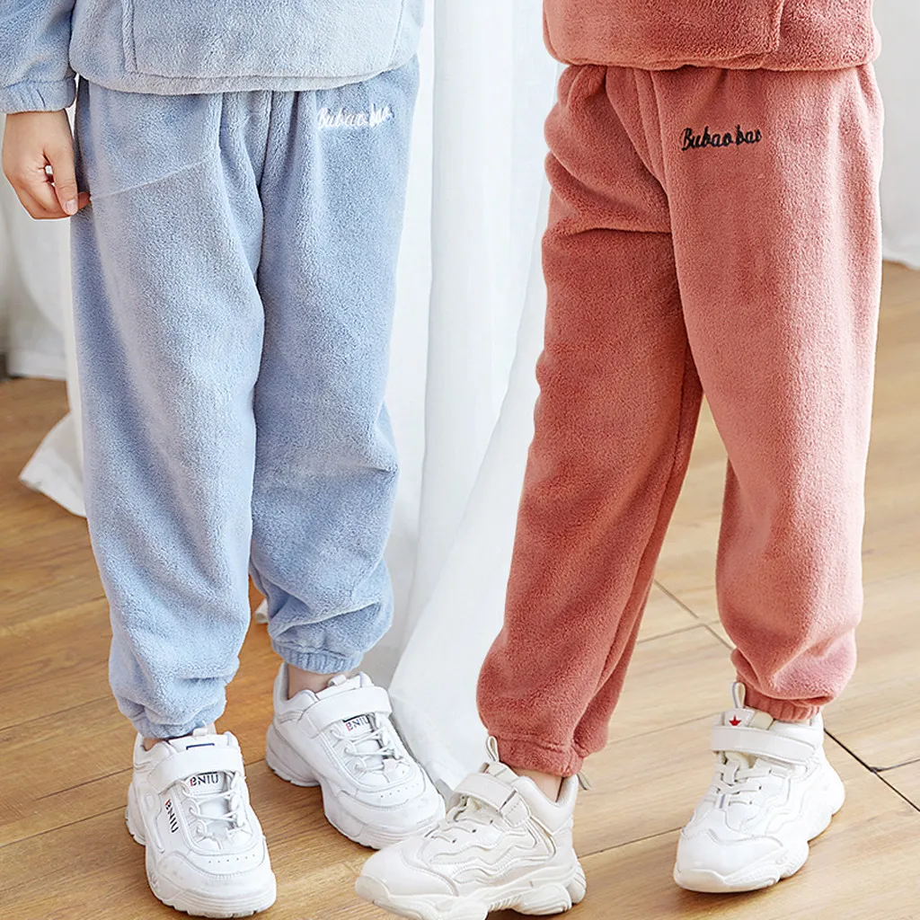 Детские повседневные плотные флисовые зимние теплые свободные штаны для мальчиков и девочек