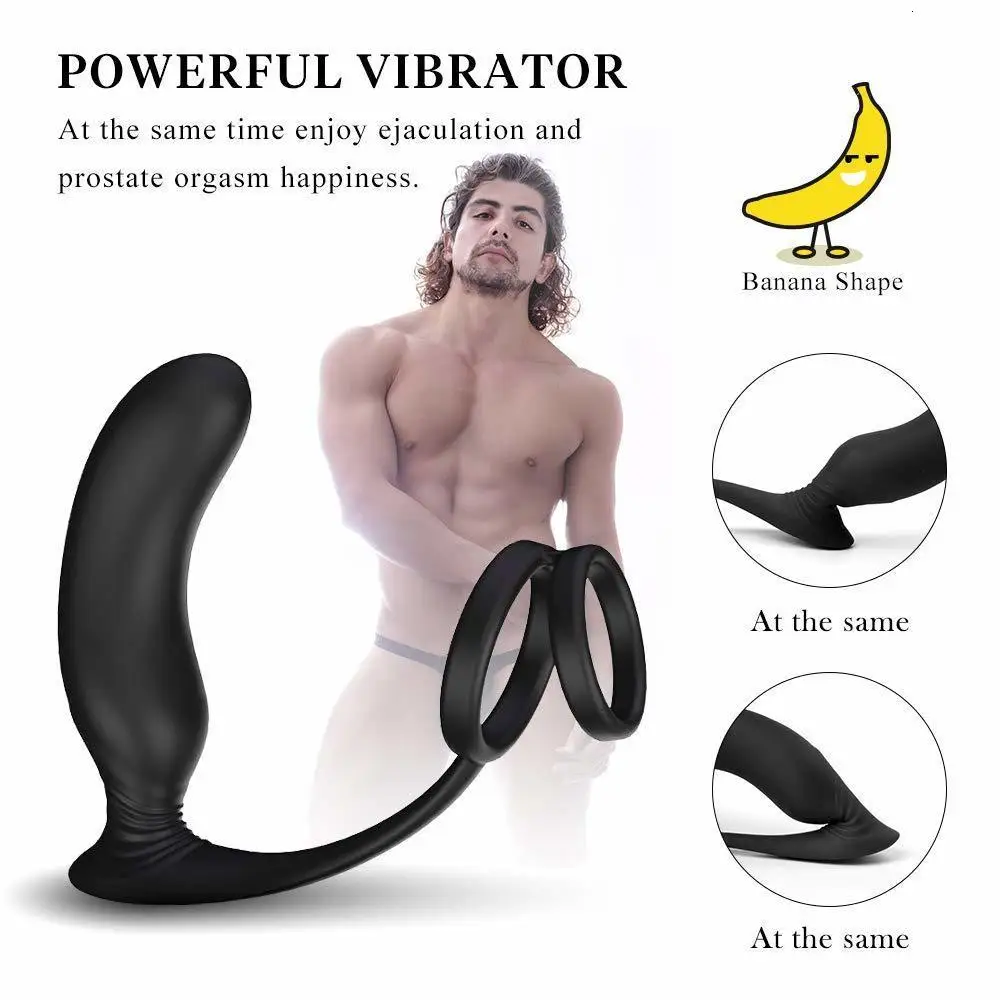 ❤ 3 IN 1 anal vibrator. The banana-shaped vibrator is designed according to the human body structure. The plug can aim at your anus, massage the prostate, stimulate orgasm and semen circulation. There are 2 ring locks on the penis and testicles, which can increase the erection time and make you more enjoyable.