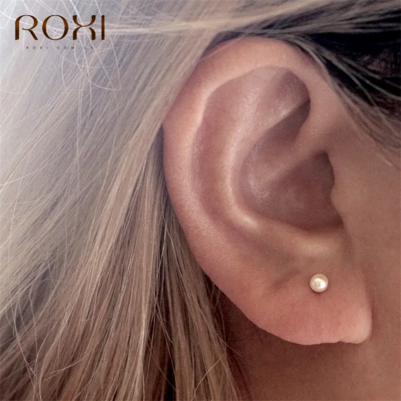 Женские серьги-гвоздики с натуральным пресноводным жемчугом ROXI, Настоящее серебро 925 пробы, подарок на Рождество, женские вечерние ювелирные изделия