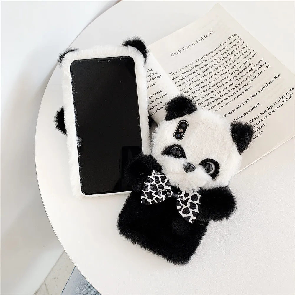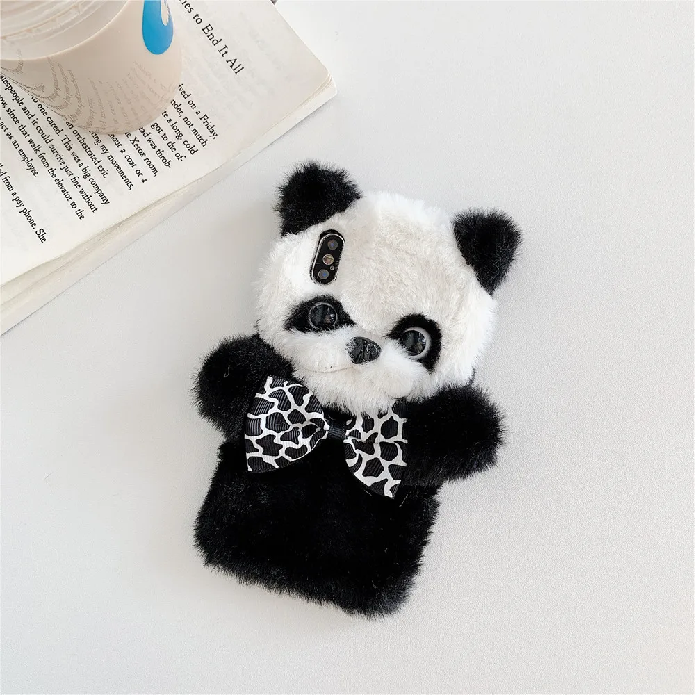 Для iPhone 11 Pro Max, плюшевый чехол для телефона, милый пушистый бампер с пандой, Противоударная задняя крышка для iPhone X XsMax iPhone 7 8, чехол Funda