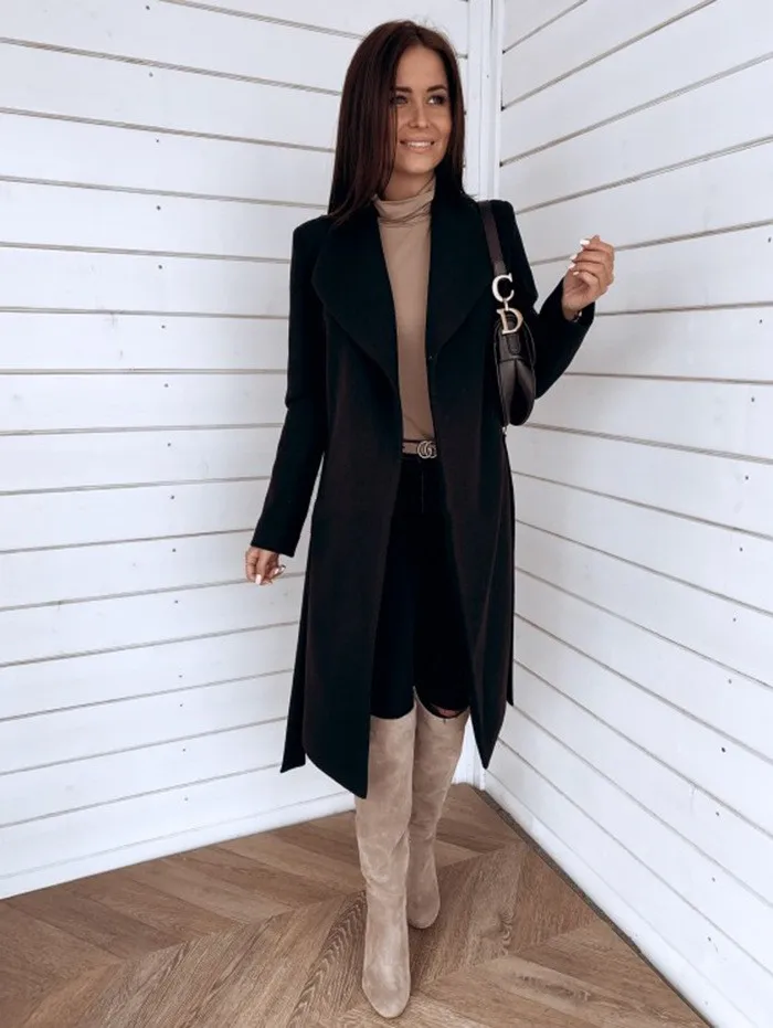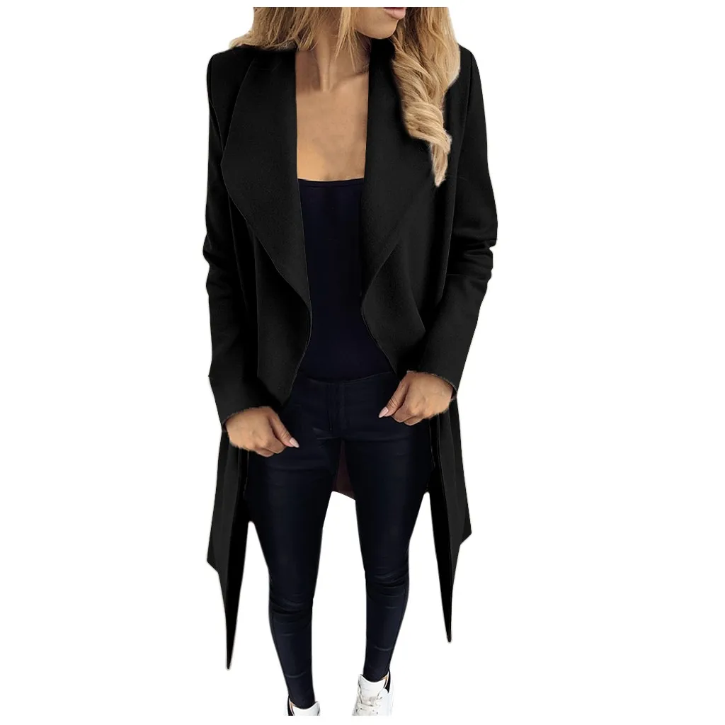 Это повседневное длинное пальто отличается однотонным дизайном, длинным рукавом и модным дизайном. Легкая и неэластичная ткань. Свободный силуэт.