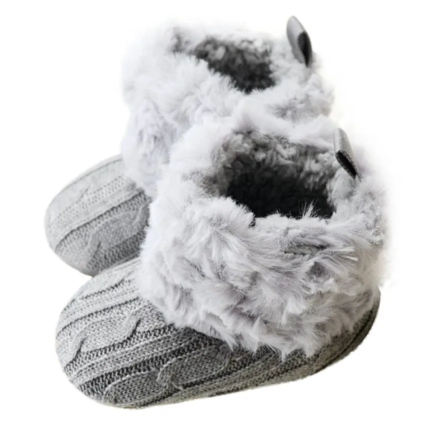 Для новорожденных детей, для мальчиков и девочек, с вязаным мехом, для малышей, с мягкой подошвой, короткие теплые мягкие зимние сапоги, теплая нескользящая обувь на меху для малышей