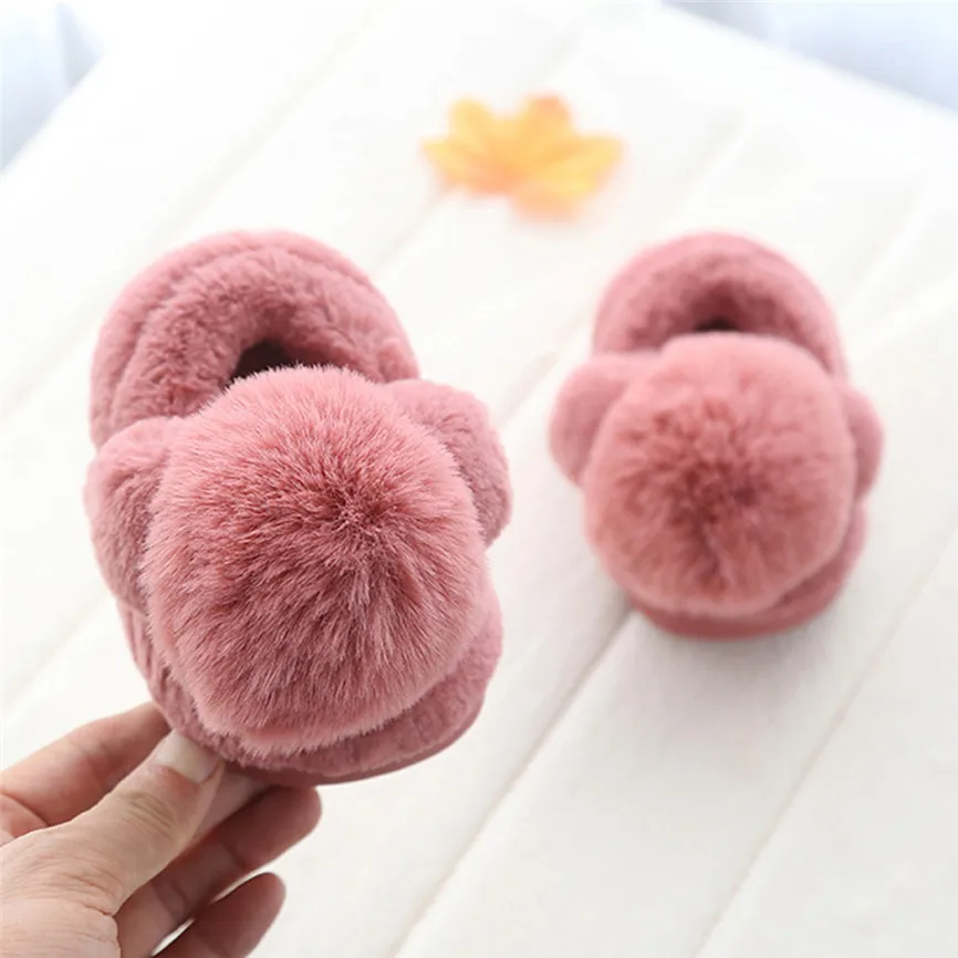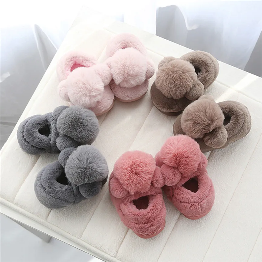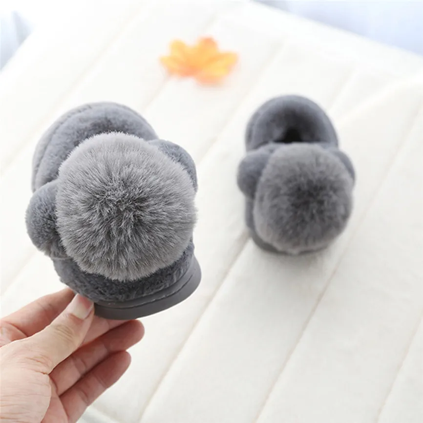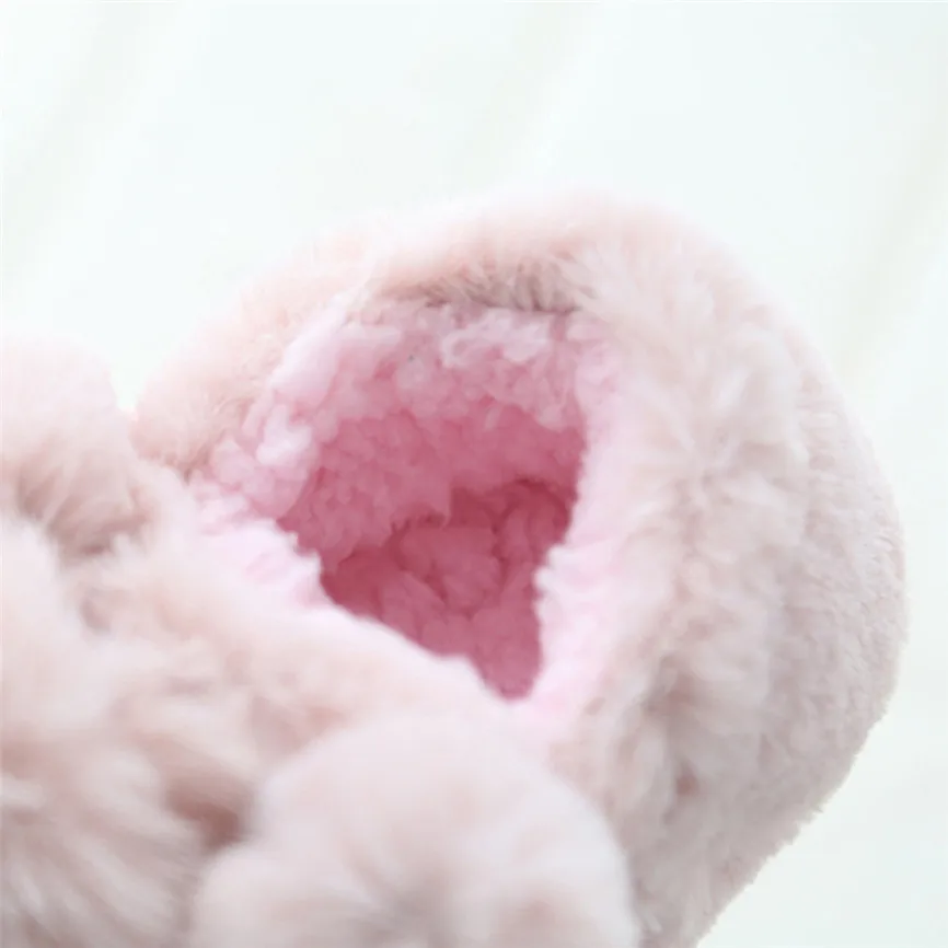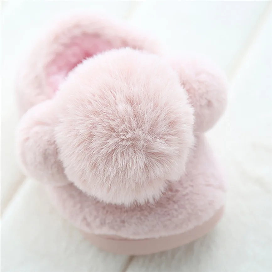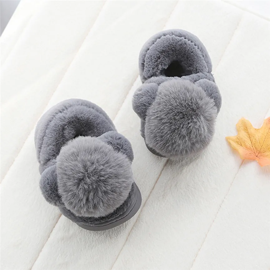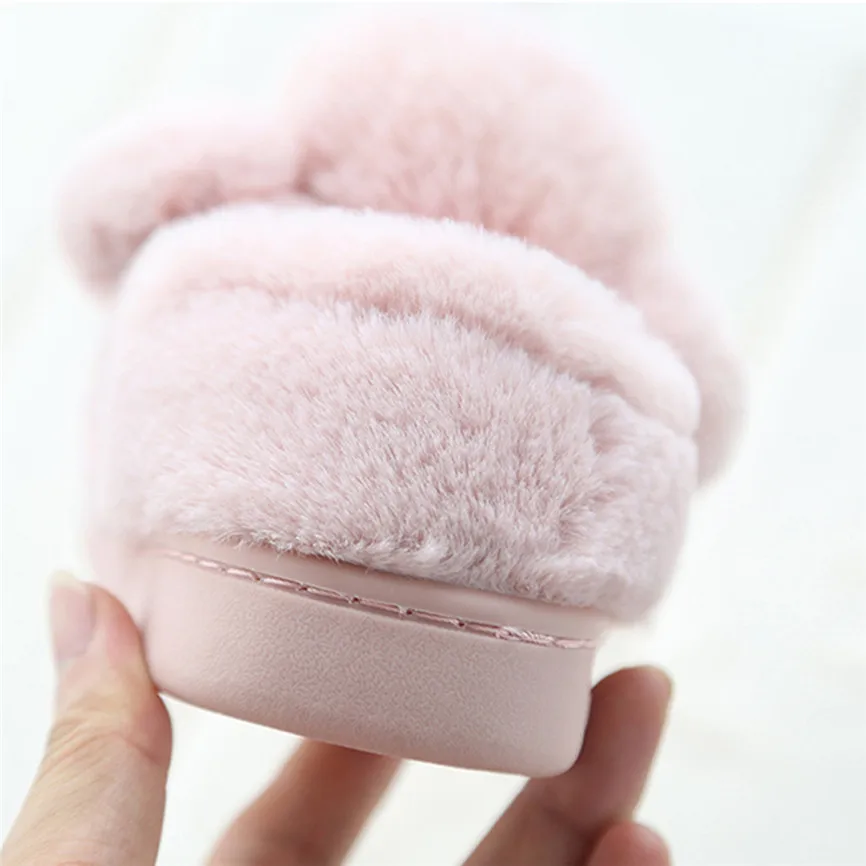 Мягкие милые бархатные хлопковые тапочки для маленьких мальчиков и девочек; теплые однотонные тапочки с животными; нескользящая Мягкая домашняя обувь для малышей