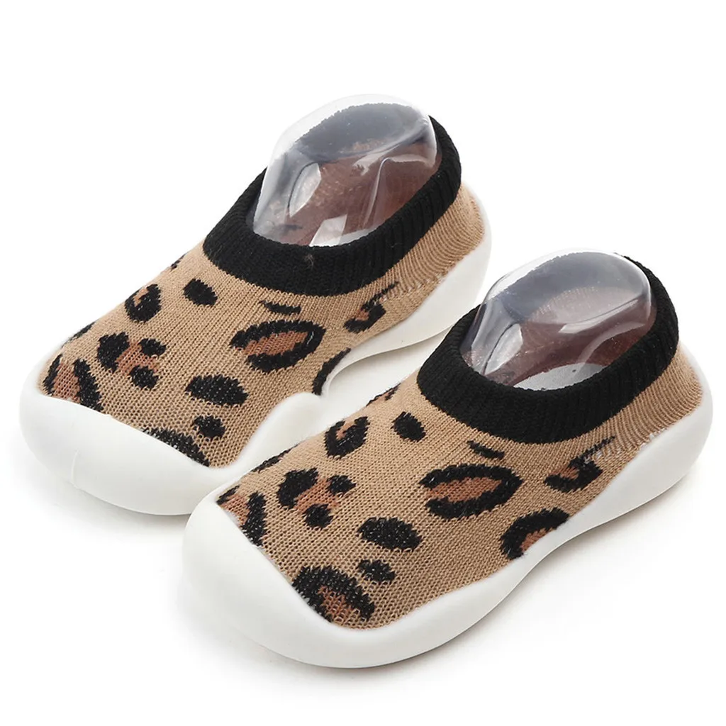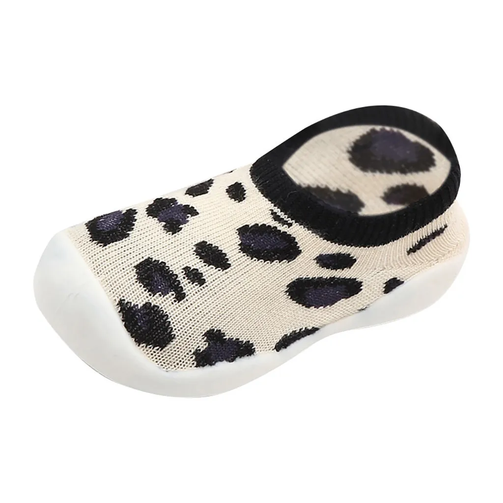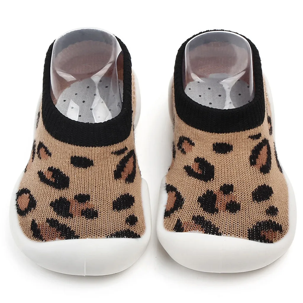 Вельветовая хлопковая обувь для маленьких девочек и мальчиков Удобная однотонная модная обувь для первых шагов, детская обувь с леопардовым принтом нескользящая Мягкая домашняя обувь