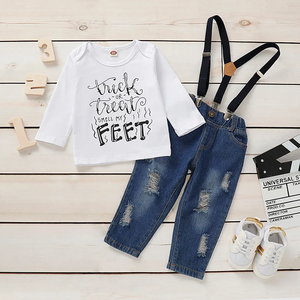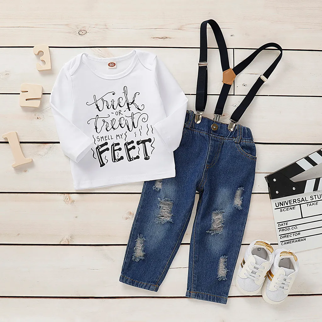 Toddler Kids Baby Boys Bow Tie Plaid+Denim Shirt+ Pants Overalls Gentleman Suit
