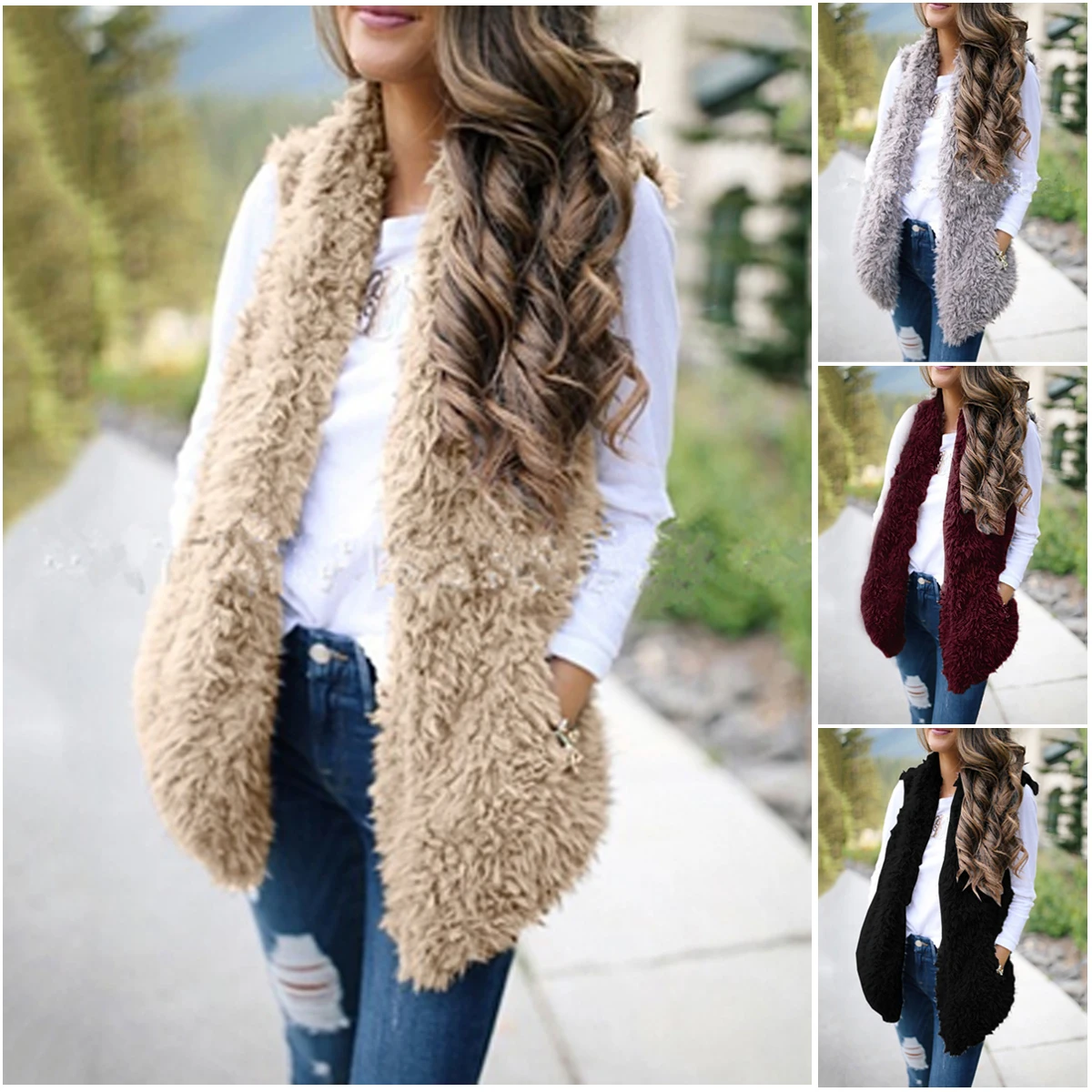 Посылка включает в себя: 1 пушистое пальто; Флисовый меховой жилет