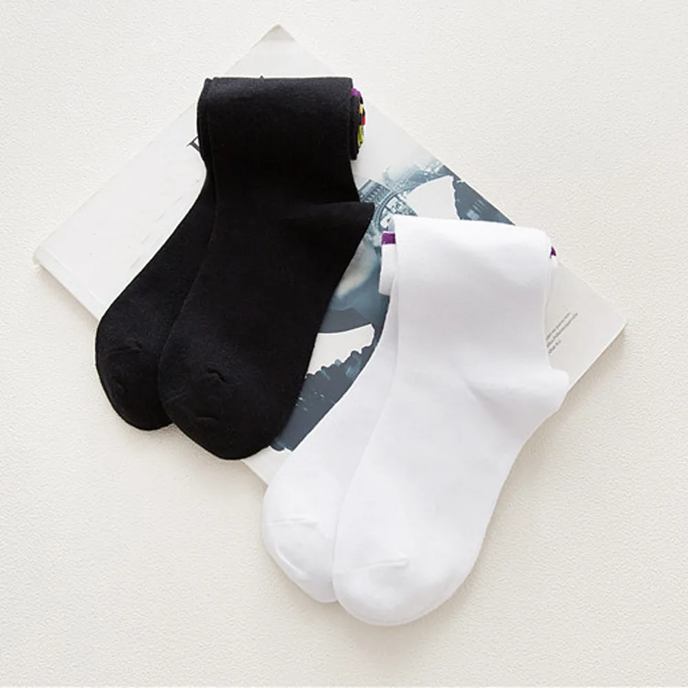 1 пара, Гольфы выше колена в радужную полоску для девочек, футбольные спортивные носки, черные, белые