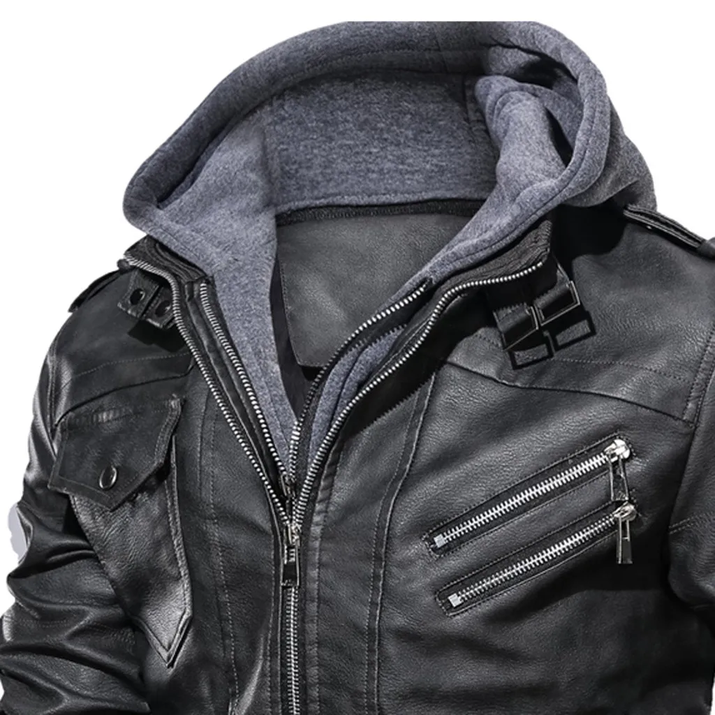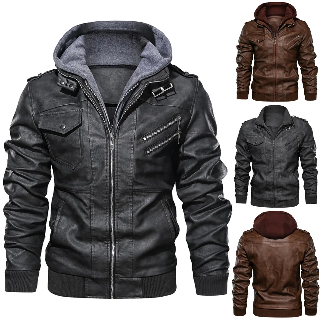 Мужская Осенняя зимняя Толстовка со съемным капюшоном, однотонное пальто из искусственной кожи