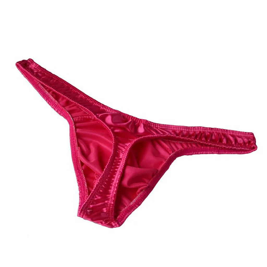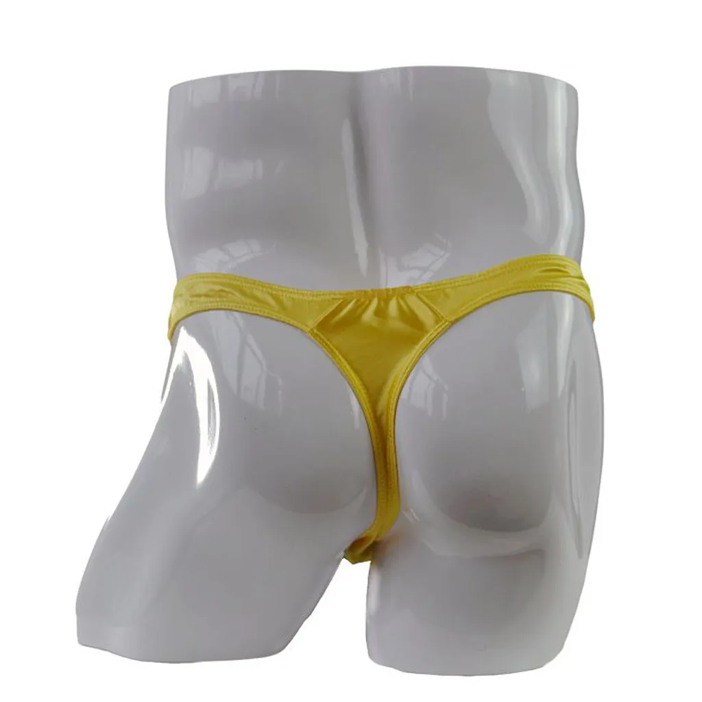 Сексуальные Сатиновые стринги, мужские однотонные трусы с низкой талией, эластичное дышащее удобное мягкое гладкое нижнее белье, мужские стринги
