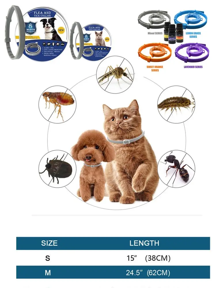 Ошейник для питомцев, водонепроницаемый ошейник для собак, кошек, комаров, Открытый регулируемый ошейник для питомцев, аксессуары для собак, защита 8 месяцев