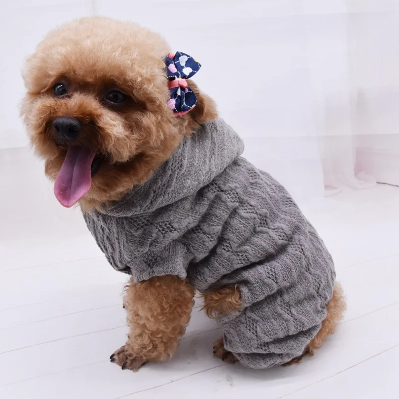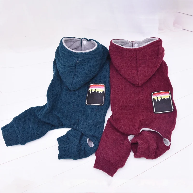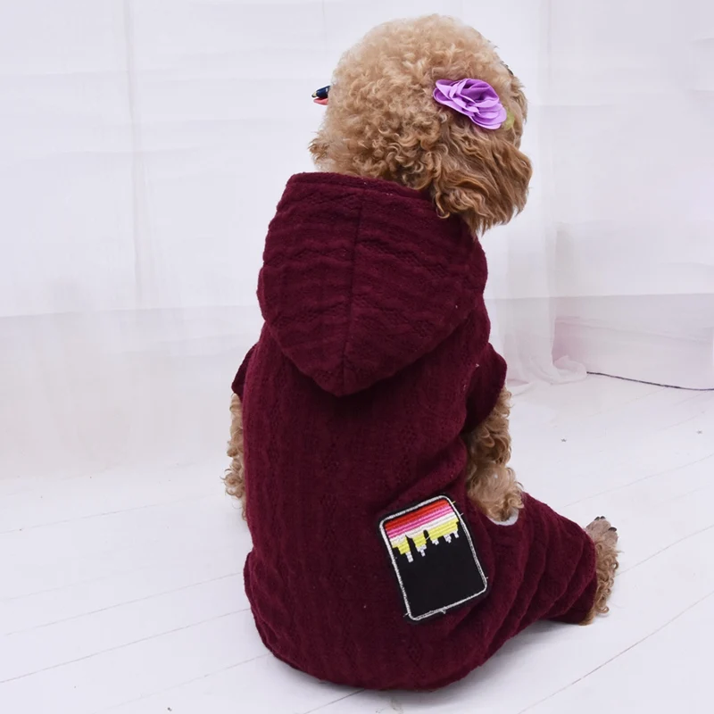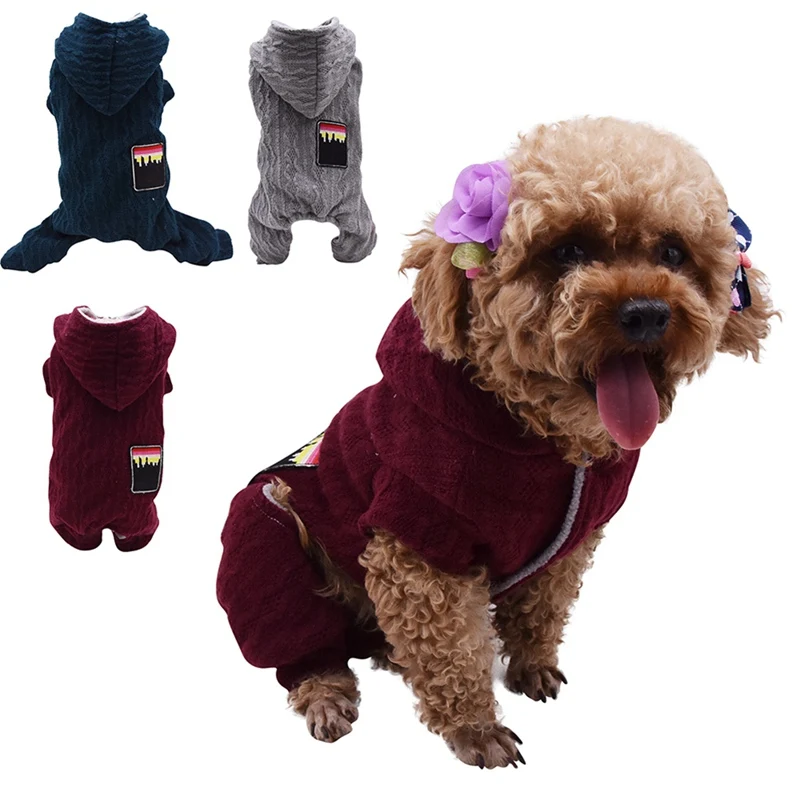 Теплое пальто с капюшоном для домашних животных на осень и зиму, 4 легинсы, Шерстяная трикотажная толстовка, маленькое и среднее модное пальто с капюшоном