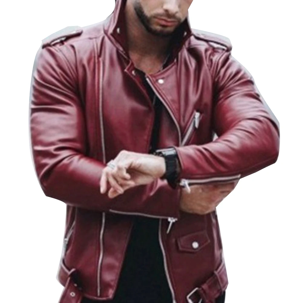 Мужские кожаные куртки, осенние куртки с длинным рукавом и воротником-стойкой, зимние куртки на молнии, черные, винно-красные пальто из искусственной кожи, куртка мужская