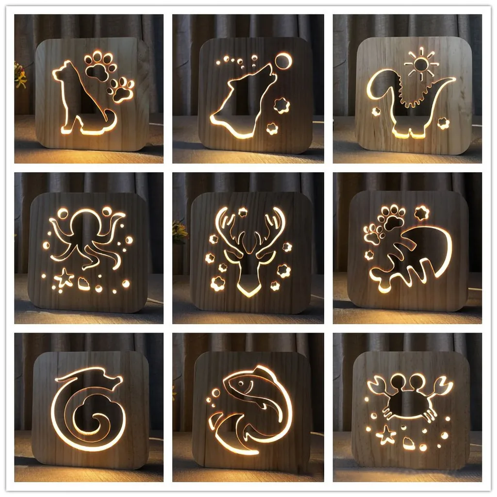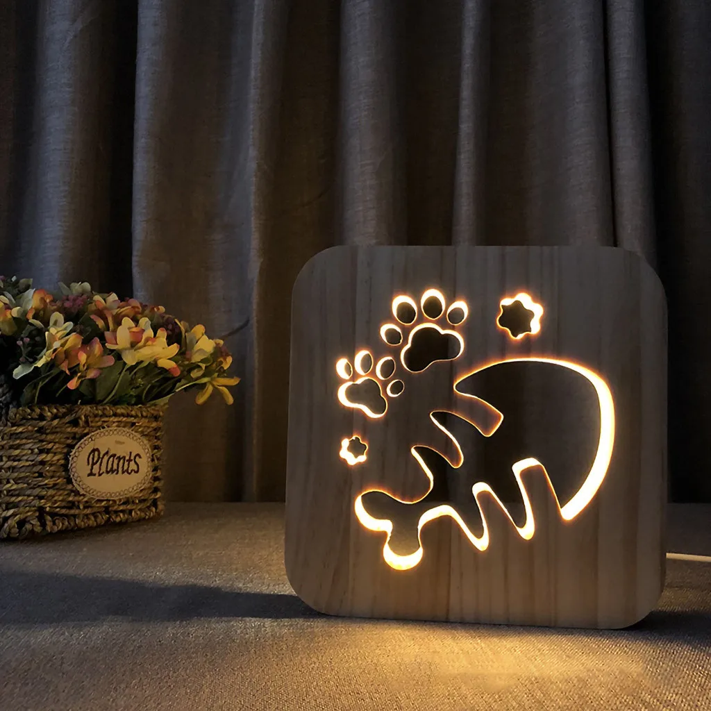 Деревянный светодиодный Ночной светильник с анималистической собачкой, лапой, кошкой, львом, в форме питомца, настольная лампа, дерево, 3D, стерео, Ночной светильник, животное, мультяшный Стиль A1
