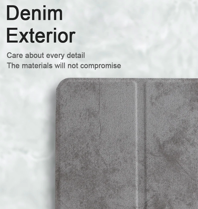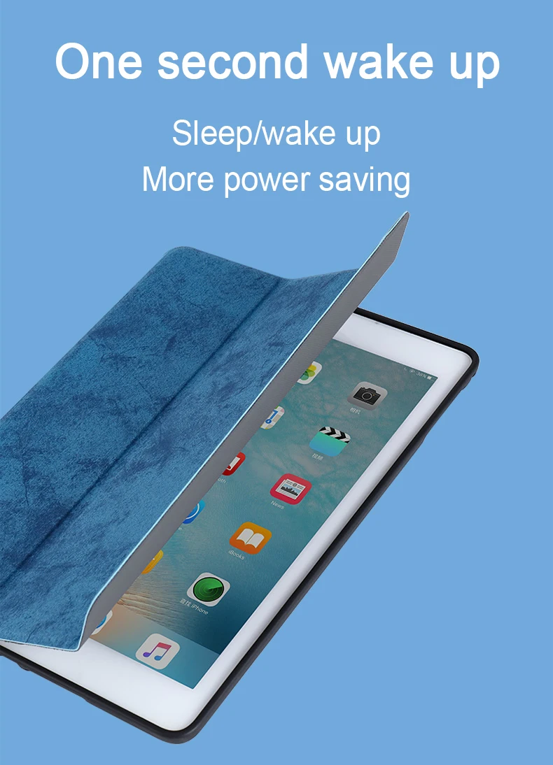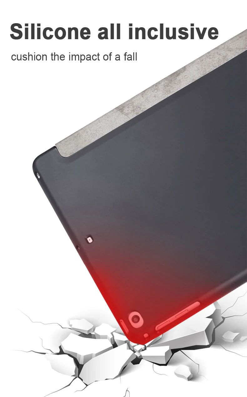 Отделка премиум-класса из синтетической кожи снаружи и мягкая подкладка из микрофибры с мягкий, гибкий, из ТПУ на заднюю панель. Гладкий ТПУ материал отлично ощущается и не оставляет отпечатков пальцев и царапин. Передняя крышка с двумя стоящими позициями для facetime, просмотра фильмов и ввода клавиатуры. Магнитный умный чехол поддерживает функцию автоматического сна/пробуждения с быстрой реакцией. Технология воздушной подушки и соты лучше амортизируют функцию и лучше рассеивают тепло.