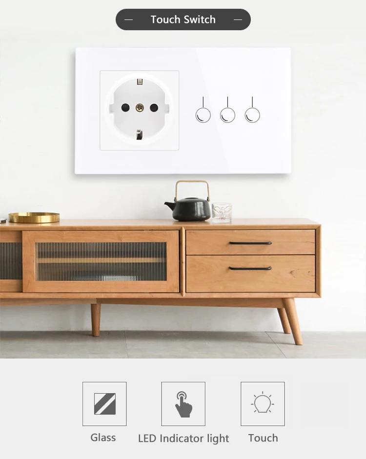 UNKAS ЕС Стандартный 1 местный 1 позиционный сенсорный выключатель и Мощность розетки с зарядное устройство для автомобиля с двумя портами USB Индукционная зарядка Порты и разъёмы для мобильных устройств 5V 2.1A
