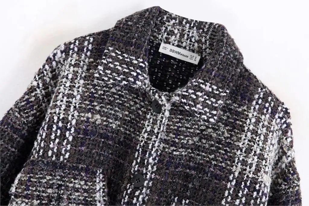 Женская шерстяная куртка zora vicky, винтажная блузка с длинным рукавом, верхняя одежда, вязаная клетчатая куртка, зимняя одежда