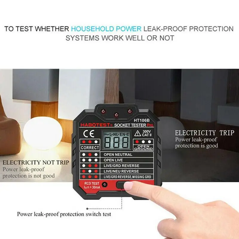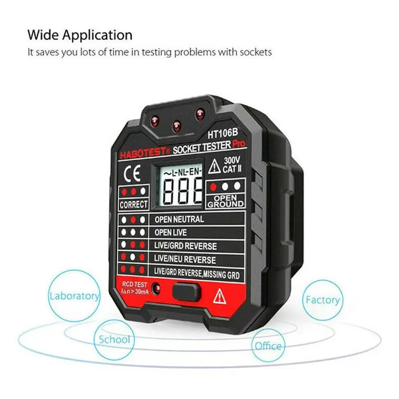 100% новый высококачественный светильник с рисунками хорошо маркируется на поверхности тестера розеток. Тестер принимает встроенный светильник, поэтому его также можно использовать в темноте. Легко и быстро прочитать результат теста. Цвет как показано Материал: огнестойкий АБС напряжение: 48V-250V 45-65Hz тест на RCD: >30 мА (штепсельная Вилка EU/UK) Рабочее напряжение RCD: 220 В ± 20 в GFCI тест: >5 мА (вилка стандарта США) GFCI Рабочее напряжение: 110 В ± 20 в измерение напряжения: 48 В-250 В/45-65 Гц точность: ±(2.0% + 2) Рабочая среда: 0-40 degC, 20%-75% RH среда хранения: -10 дегк-50 дегк, 20% -80% относительной влажности степень безопасности: EN61010-1,-2-030, EN61326-1, CAT II 300V размер изделия: 62x65x55 мм/2,4x2,6 x 2.2in широко используется для тестирования электрического обслуживания, тестирования офисных розеток, тестирования силовых полосок и тестирования настенных розеток в школе, лаборатории, фабрика и другие социальные сферы. Это экономит вам много времени при тестировании проблем с розетками. Упаковка: 1 тестер гнезда 1 Руководство пользователя