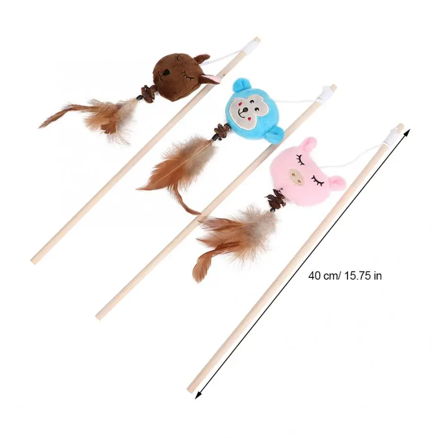 3 шт./упак. кошка плюшевые домашние тапочки с кошечкой из мультфильма палочка-Дразнилка с перьями игрушка деревянная палка шест интерактивный снятия стресса игрушки