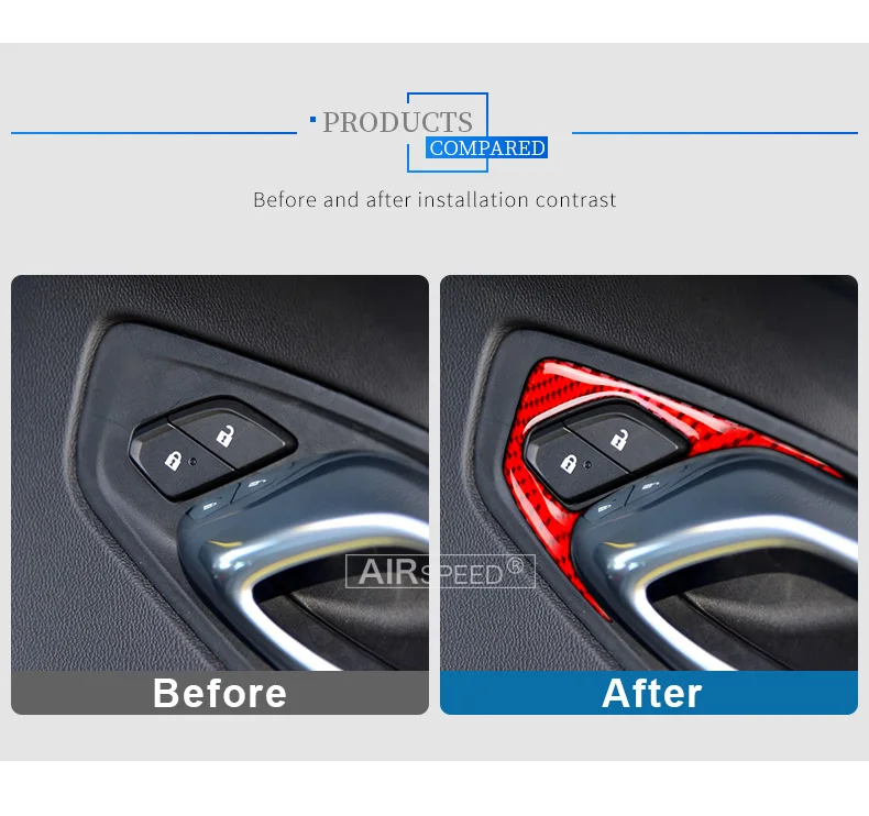 Изделия изготовлены из высококачественного углеродного волокна с приятными текстурами. Изделия изготавливаются в соответствии с оригинальными размерами, которые идеально подходят. Интерьер будет сильно очарован их украшениями и не будет испорчен их простой установкой. Состояние на 100% абсолютно новый Посылка включает в себя: 2 шт./комплект Материал: углеродное волокно Совместимые модели: для Chevrolet Camaro 2016-2019