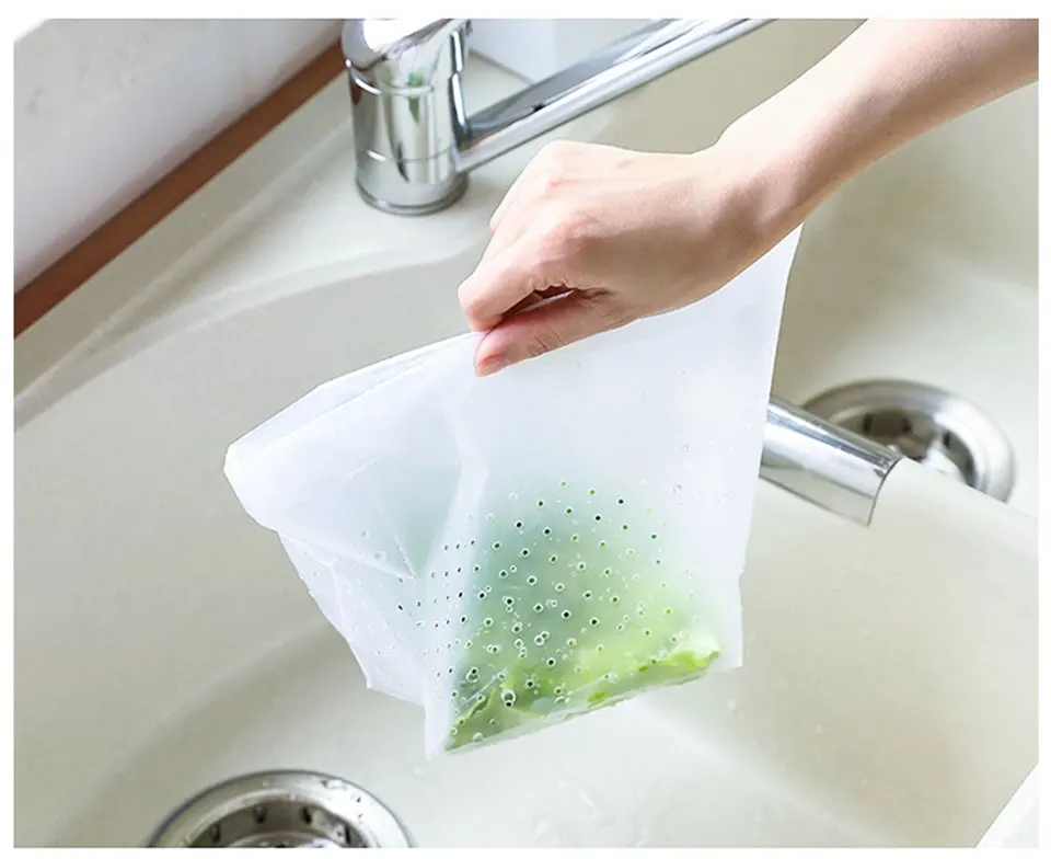 Этот кухонный мешок для мусора разработан с рядом небольших отверстий, чтобы облегчить поток жидкости и сохранить остатки, А затем откиньте мешок для мусора вместе с остатком, чтобы избежать проблем с попаданием жидкости в мусорный бак.