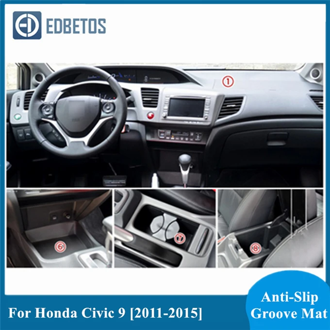 Противоскользящий коврик для Honda Civic 9 2011 2012 2013 2014 2015 9th Gate Slot Coaster анти-Грязная дверь Groove коврик для салона автомобиля гель