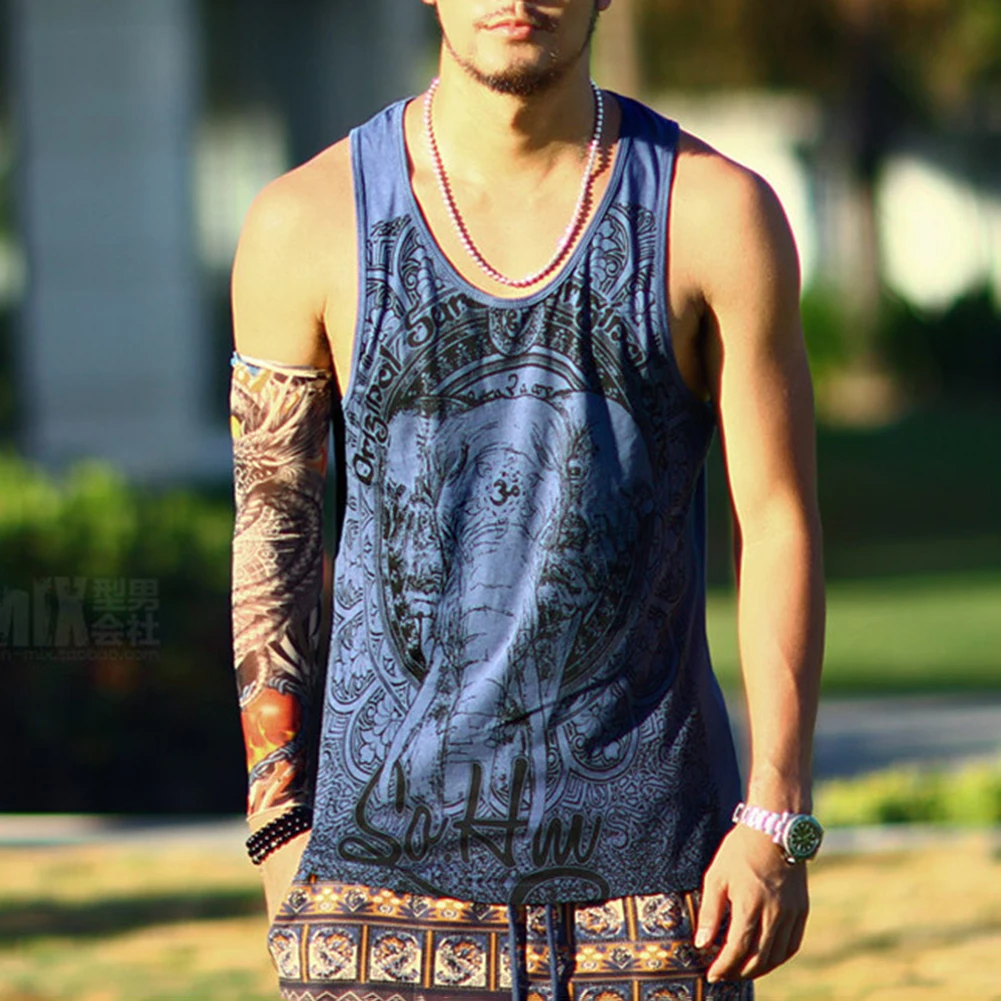 Винтажный Мужской летний жилет без рукавов с принтом слона для бодибилдинга