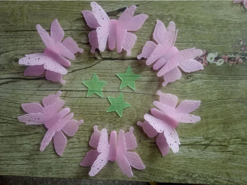Название продукции: 3D светящаяся наклейка Кол-во в коробке: 6 шт./пакет Идеально подходит для украшения: на стену, двери, лампы, предметы домашнего обихода, потолки спальни и любую гладкую, чистую поверхность. Размеры/педикюра задняя часть: около 8 см * 5 см Цвет: желтый, розовый, зеленый, смешанный цвет Материал: Пластик Посылка Содержание: 6 шт./пакет Детские Спальня замечательные флуоресцентные светится в темноте звезды наклейки на стену
