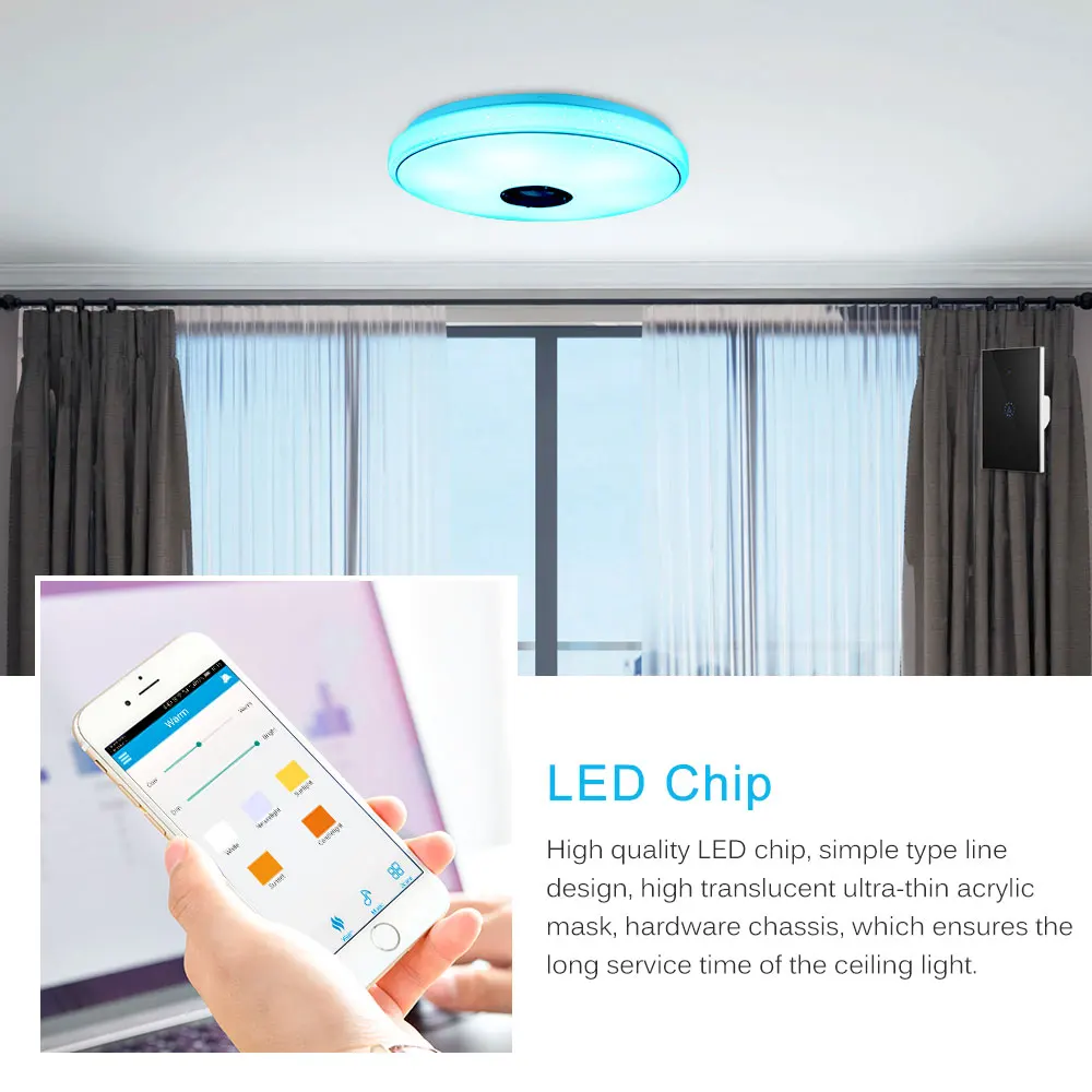 Because of no flicker and light source stability, the ceiling is greatly suitable for your living room, kitchen, bedroom, office, study, etc. and offers modern and warm atmosphere.