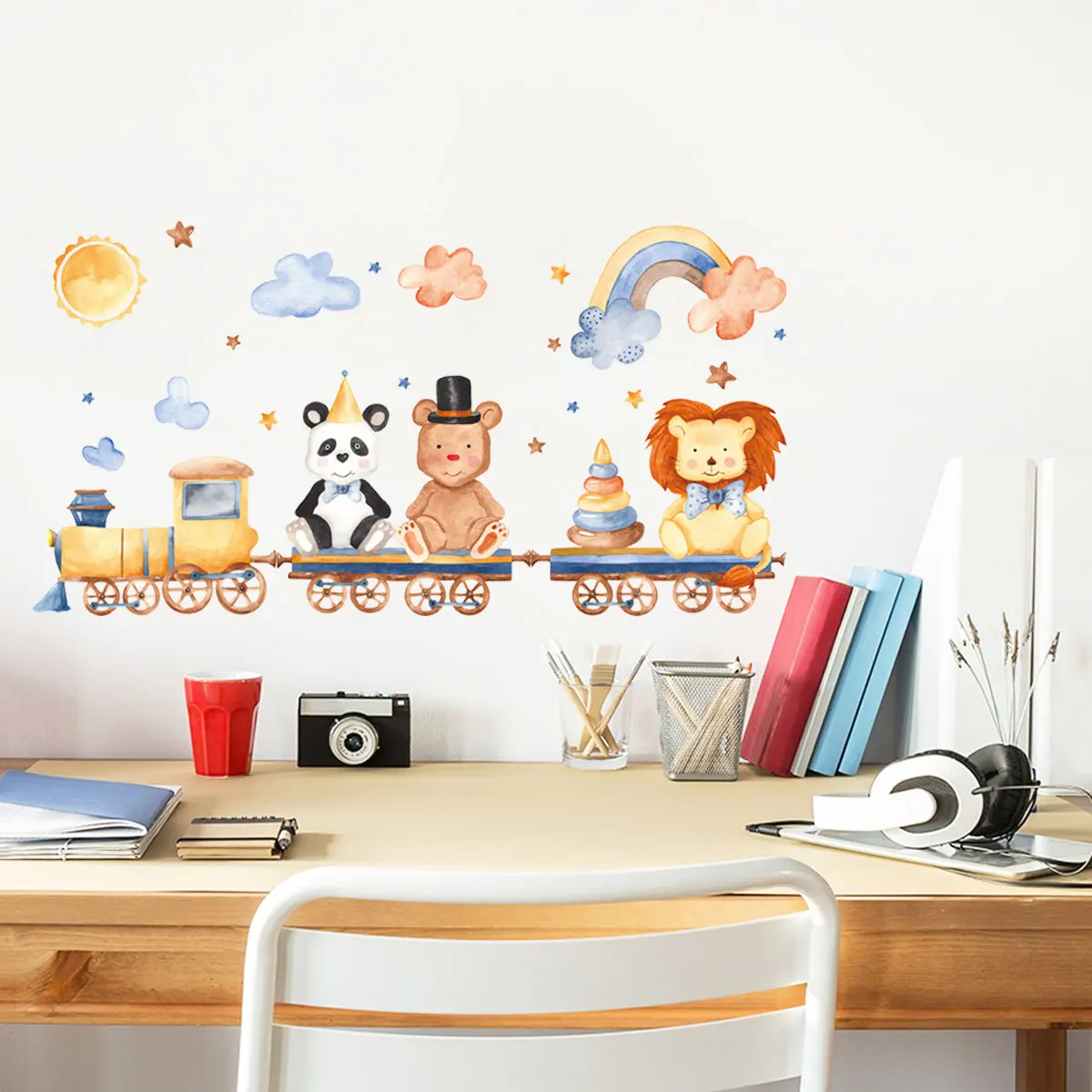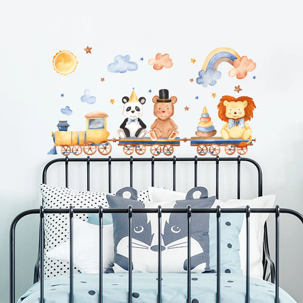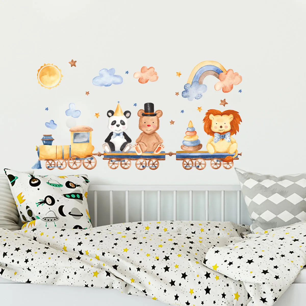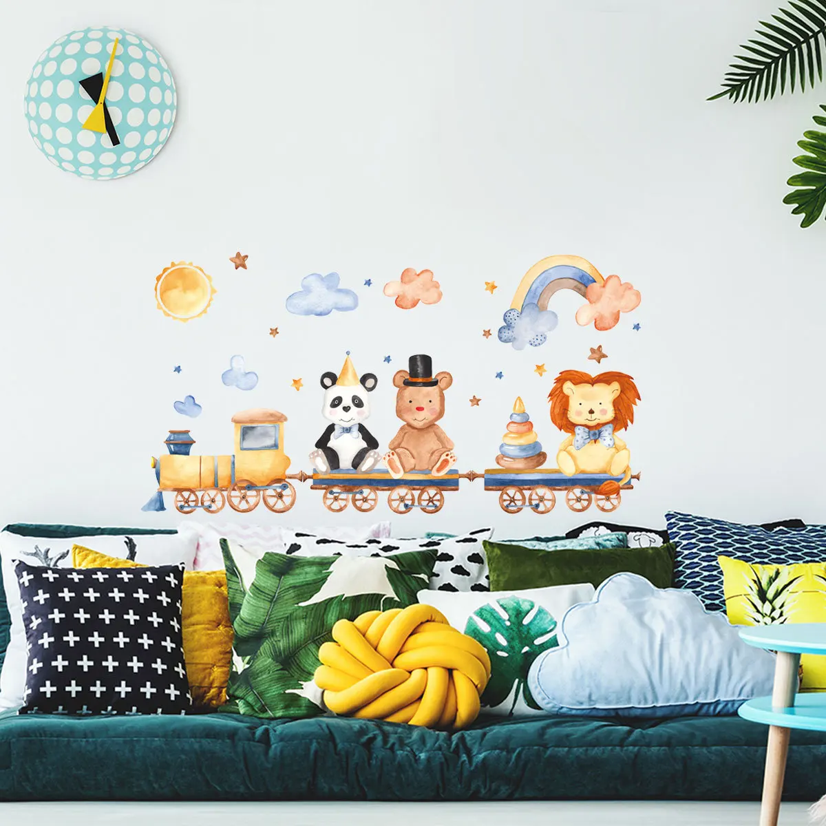 Креативные настенные Стикеры с изображением животных в виде поезда, гостиной, спальни, детской комнаты, детского сада, настенные наклейки, Настенные обои для детей