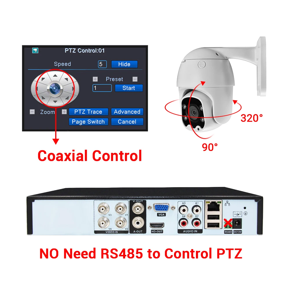 Поддержка функции XM DVR XVI, Поворот камеры без разъема RS485.