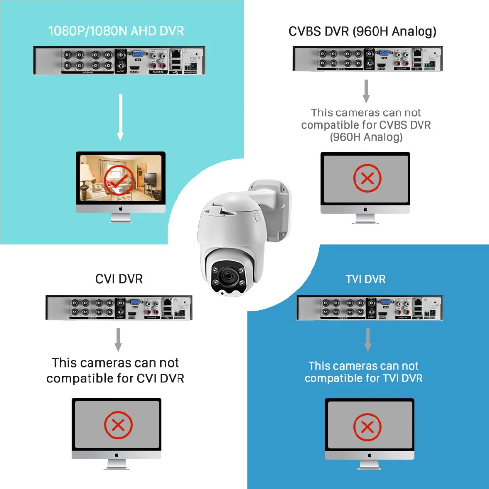 Эта камера является 1080P AHD камерой, должна подключаться к AHD DVR не менее AHD-NH, не может подключаться к телевизионному монитору напрямую или AHD-L DVR.