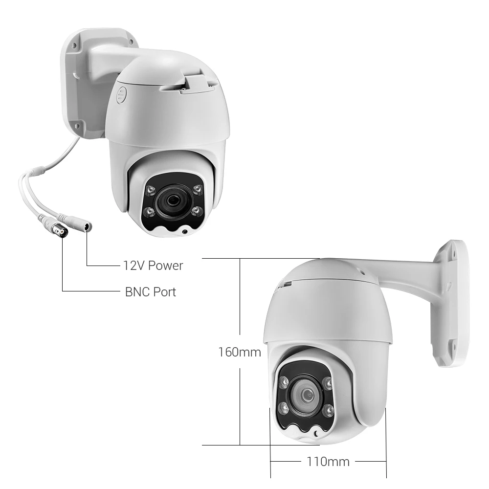 * Датчик изображения: 2235 CMOS сенсор * Разрешение: HD 1080P * Объектив: фиксированный объектив 3MP 3,6 мм * PAL/NTSC опционально * Поворот/наклон: вращается на 320 градусов влево и вправо и вращается на 90 градусов по вертикали * ИК-расстояние: 4 шт. ИК светодиодный, макс. 30 м ночного видения * Минимальное освещение IR cut: 0.1Lux (дневной) ,0.01LUX (ночной) * Корпус из высококачественного АБС-пластика: Стандартный IP66 водонепроницаемый * Источник питания: 12В 2А * Условия эксплуатации: -30 ℃ ~ 60 ℃, влажность 90% или менее (без конденсации)