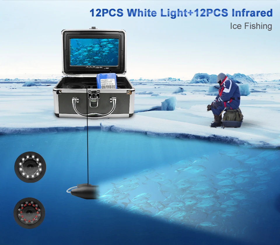Описание рыболовной камеры: Этот продукт, который вы сейчас смотрите, является последней популярной, модной, красивой и удобной подводной системой видеокамер. Он не только имеет большой и цветной экран, но и имеет камеру с разрешением высоты, которая имеет телевизионные линии HD 1000. 12 шт. белых светодиодов для девочек 12 предметов в наборе, инфракрасные лампы, high-intensity.4 разных светодиодный индикатор состояния: белый светодиод на 、 IR LED 、 все светодиода вкл 、 все светодиодное освещение, также можно регулировать яркость светодиодов, чтобы получить более качественное изображение Область применения: мониторинг аквакультура, подводная разведка, плавание, подводное плавание, рыбалка, лед, озеро, подводное плавание доступны. Особенности: 1,7 дюймов 1280*720 цвет для контроля уровня сахара в крови с солнцезащитным козырьком для яркой окружающей среды снаружи 2. Четкое изображение с HD 1000TVL мегапиксельной рыбацкой камерой. 3. Водонепроницаемый, алюминиевый сплав, конструкция рыбок на 110 градусов 4. Низким температурам, водонепроницаемый и устойчивость к растягиванию кабели 5. Длина кабеля для удлинителя камеры: 15 м 6. 12 белых светодиодов, 12 инфракрасных ламп, высокая интенсивность. 7. Время непрерывной работы аккумулятора до 8 часов, состояние батареи. 8. Мы положим изделия в 4 разных светодиодный Статус: Белый светодиодный на 、 ИК светодиодный на 、 все Светодиодный off, также можно настроить светодиодный яркость для того, чтобы получить более лучшее качество изображения Дисплей Размер дисплея: 7 дюймов Разрешение экрана: 1280*720 Входное напряжение монитора: 12 В постоянного тока Камера: Датчик изображения: КМОП-датчик IP68 Водонепроницаемый Угол обзора: 110 градусов Видимое расстояние (прозрачная вода): 1-3 м Ночное видение: 12 белых светодиодов и 12 инфракрасных ламп. Камера: 1000TVL/алюминиевый сплав Батарея: 4500AH Время непрерывной работы аккумулятора: около 8 часов