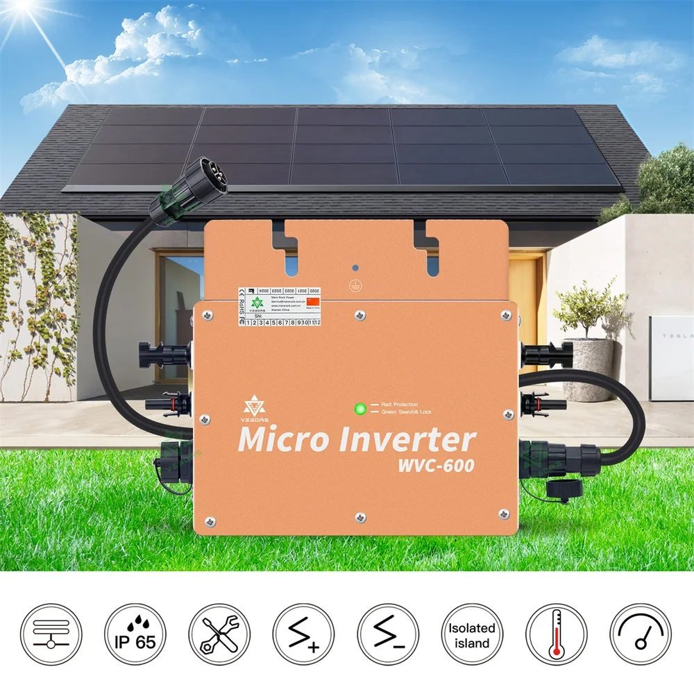 Микроинвертор WVC600 с использованием водонепроницаемого оптимизированного дизайна IP65, может эффективно предотвращать эрозию дождевой воды на поверхности, встроенная высокопроизводительная функция отслеживания максимальной мощности (MPPT), лучше отслеживать изменения солнечной яркости и контролировать различную выходную мощность, эффективно улавливать и собирать солнечный свет. Передача электрической энергии переменного тока с использованием технологии обратной передачи, является одной из наших запатентованных технологий, выходная мощность инвертора может обеспечить приоритетное использование нагрузки, дополнительное электричество в сетку, эффективное использование инвертора к излучаемой мощности, скорость передачи электроэнергии до 99%.