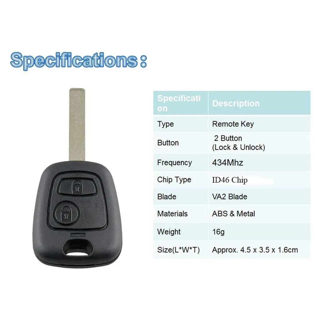 2 кнопки 433 МГц ID46 чип дистанционного ключа без ключа для peugeot 307 замена ключа автомобиля аксессуары