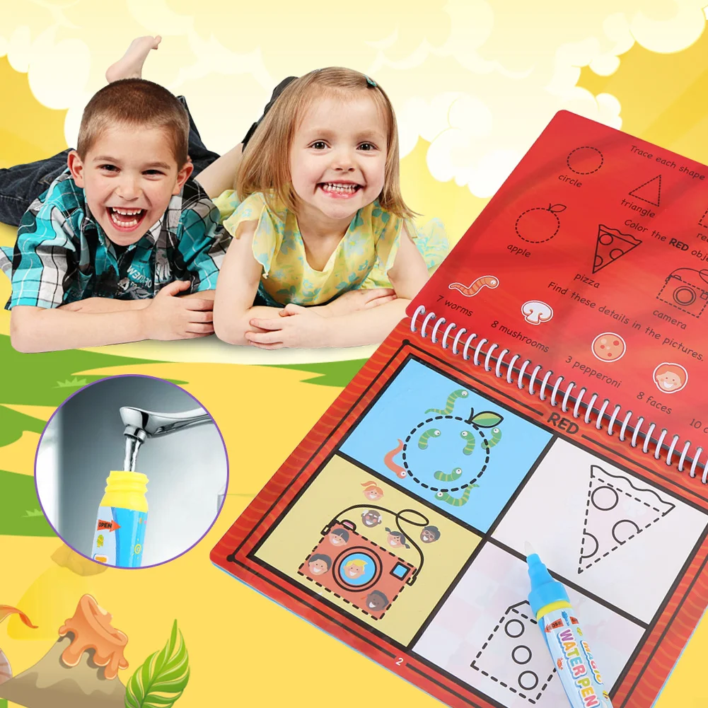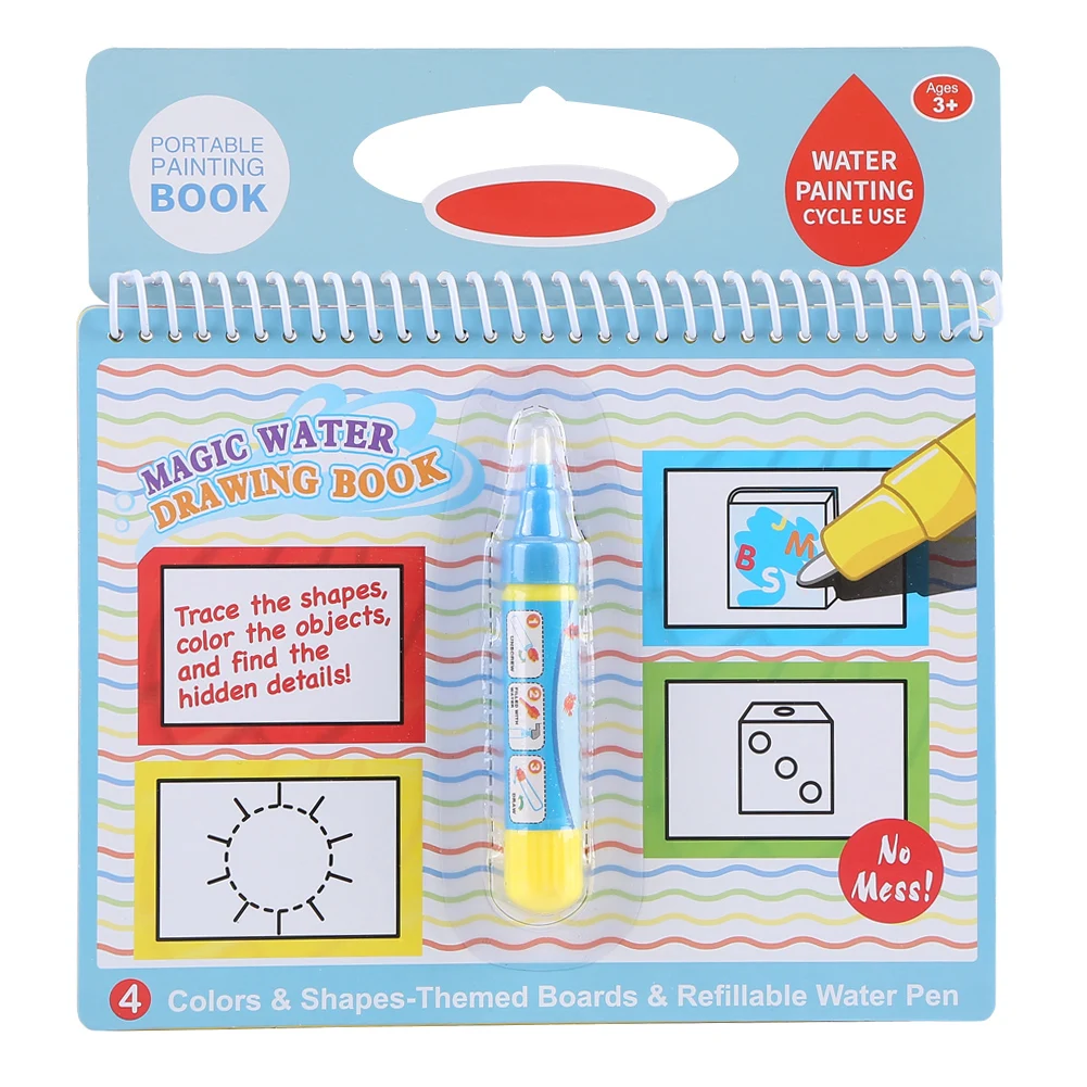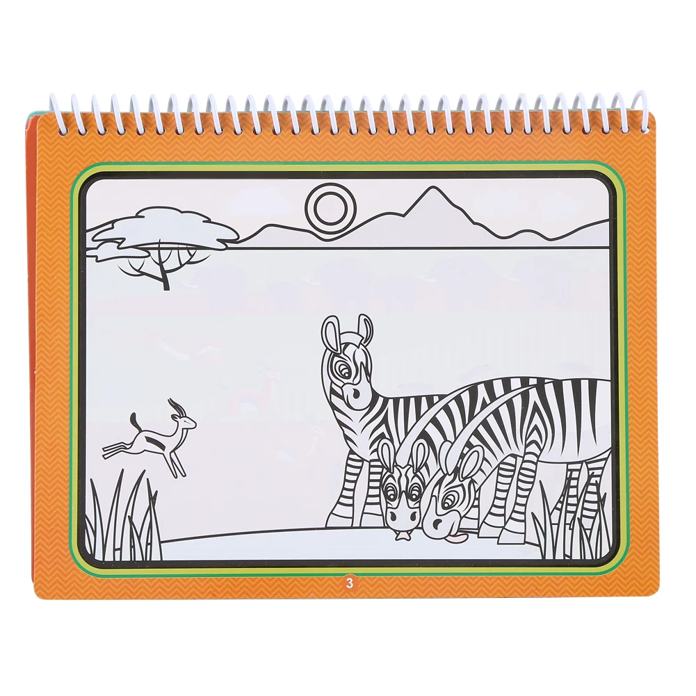 Эта креативная книжка-раскраска позволяет детям рисовать по-новому. Он принимает специальный и нетоксичный материал, который будет выглядеть красочными чернилами при намокании. Затем он постепенно исчезнет после испарения воды. Ваши дети могут рисовать повторно и держать себя в чистоте. Гуманизированная ручка предназначена для удобной переноски. Хороший Дошкольный подарок для ваших детей.1.
