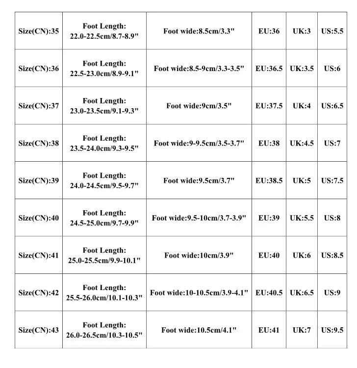 Warm Reminder:Different Shoe Styles,Please Select The Size According To Your Foot Type