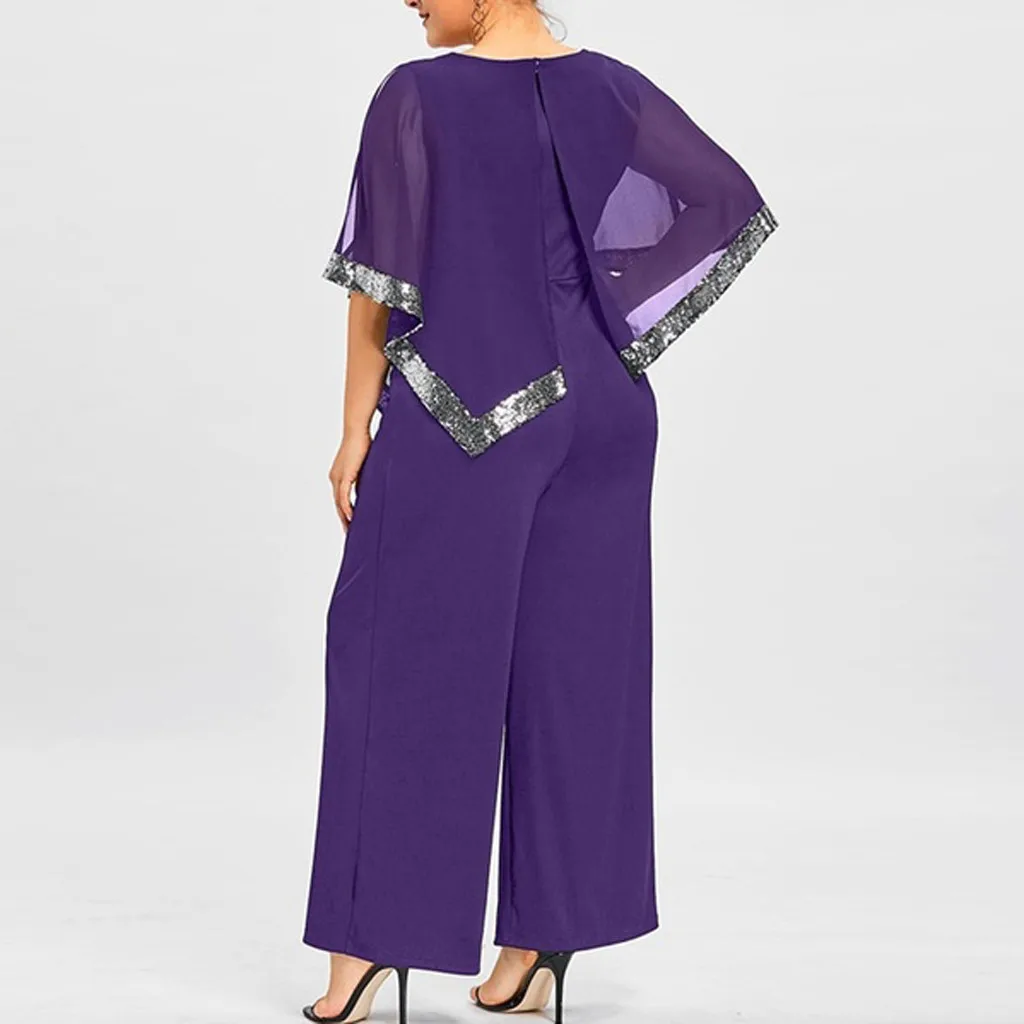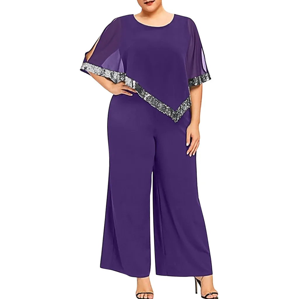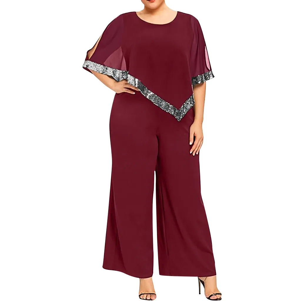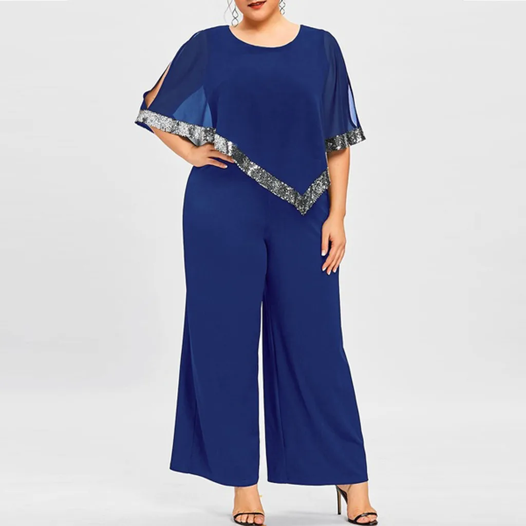 Женский модный комбинезон размера плюс на молнии с блестками