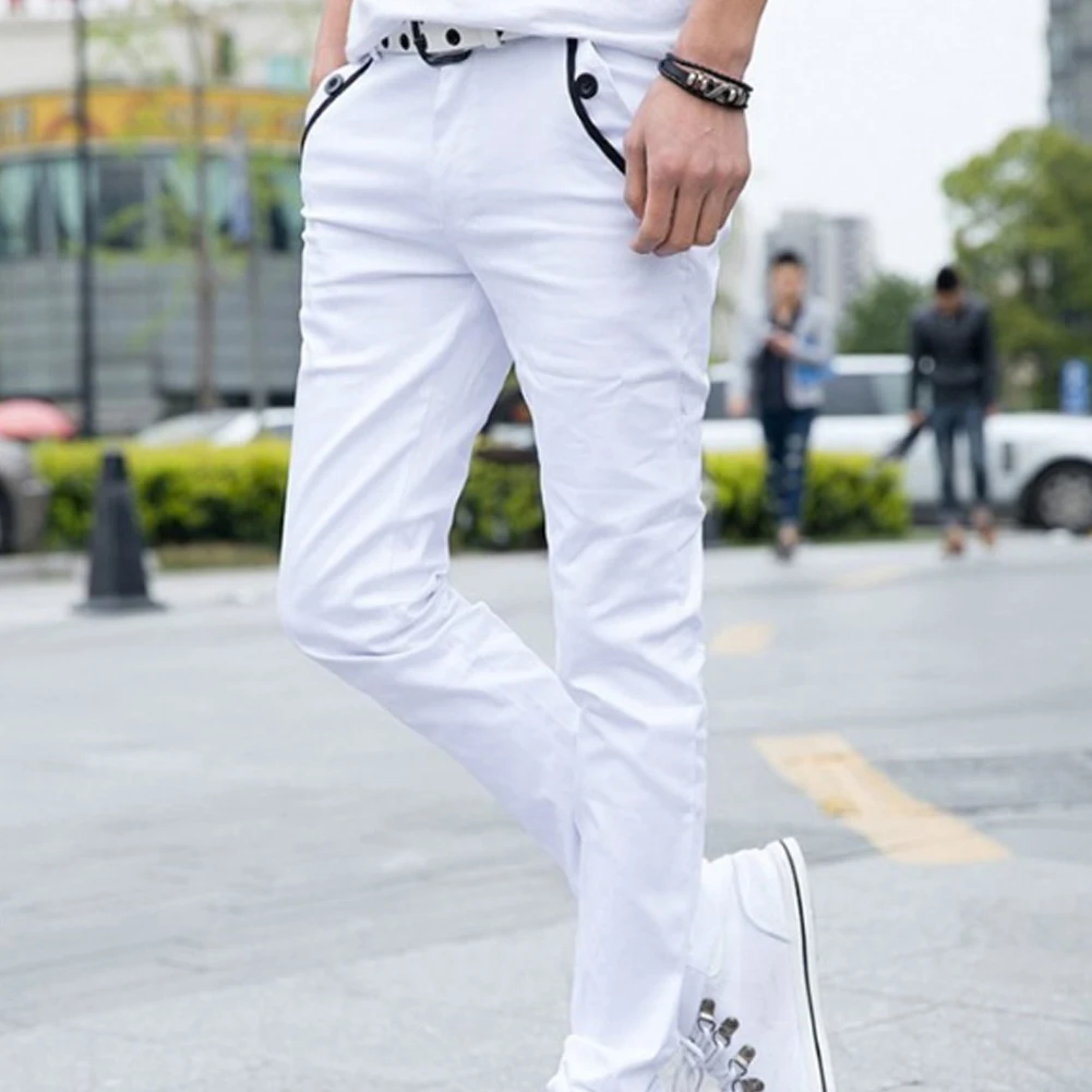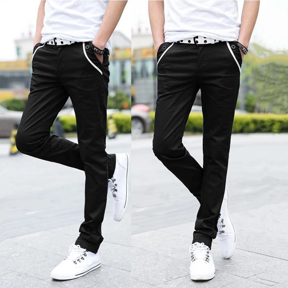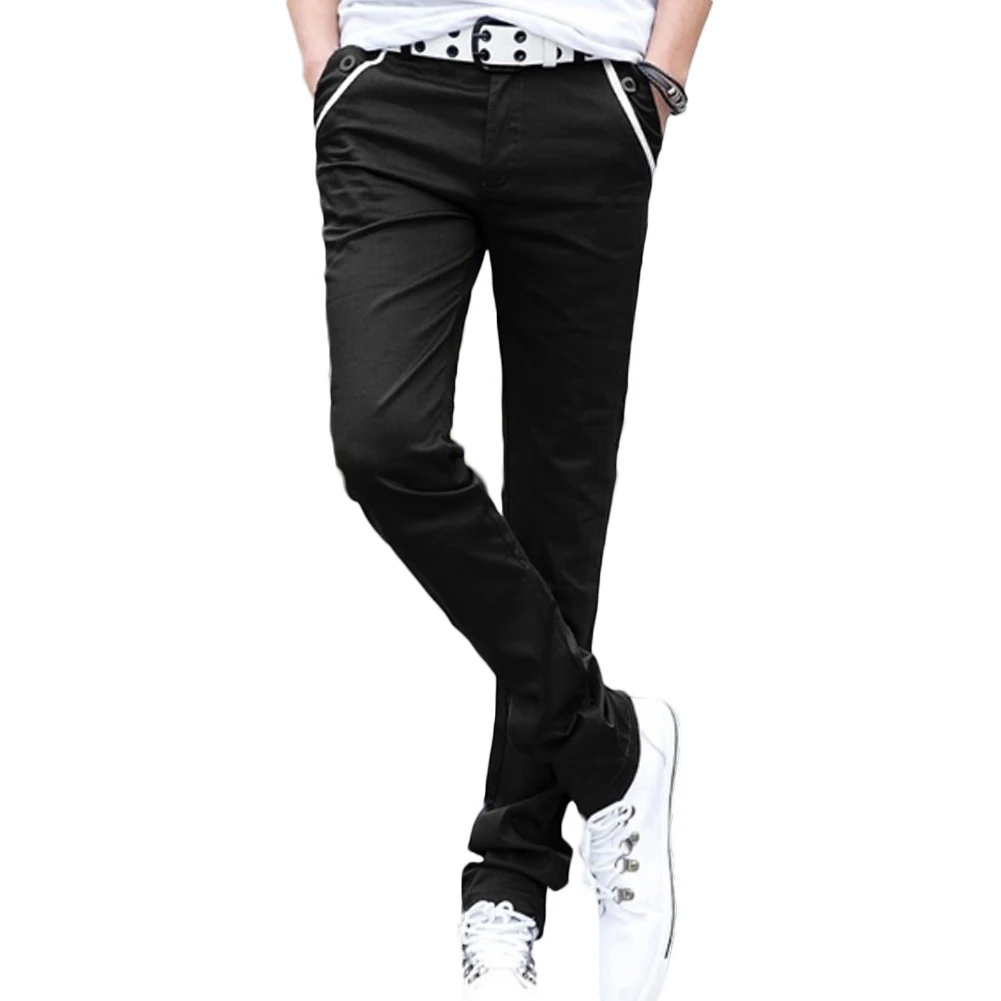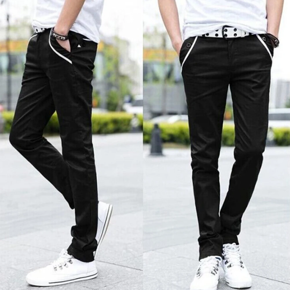 Мужские повседневные Однотонные эластичные длинные брюки S-lim, прямые брюки с карманами
