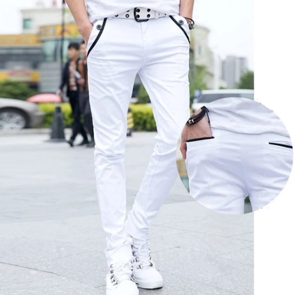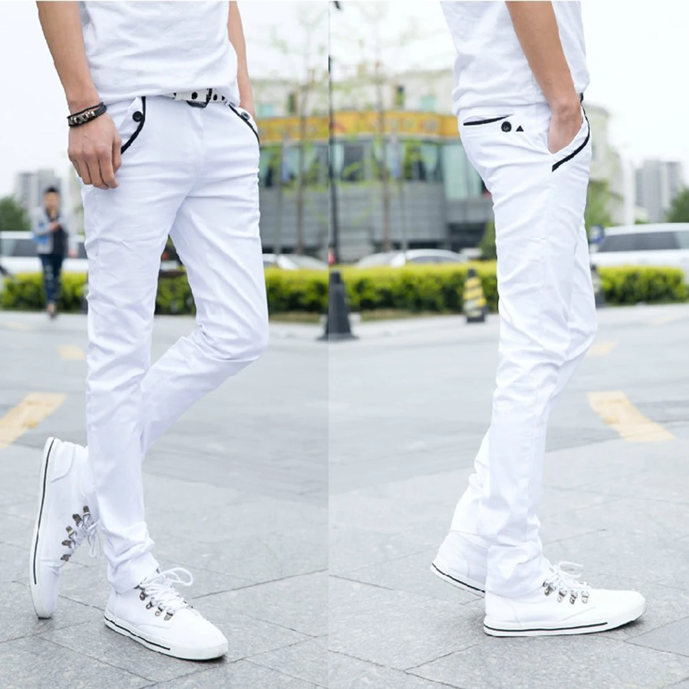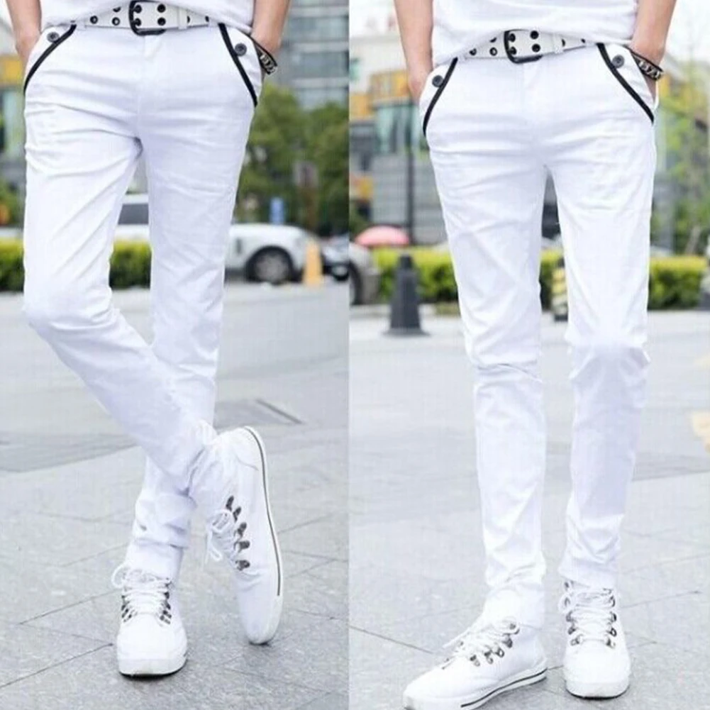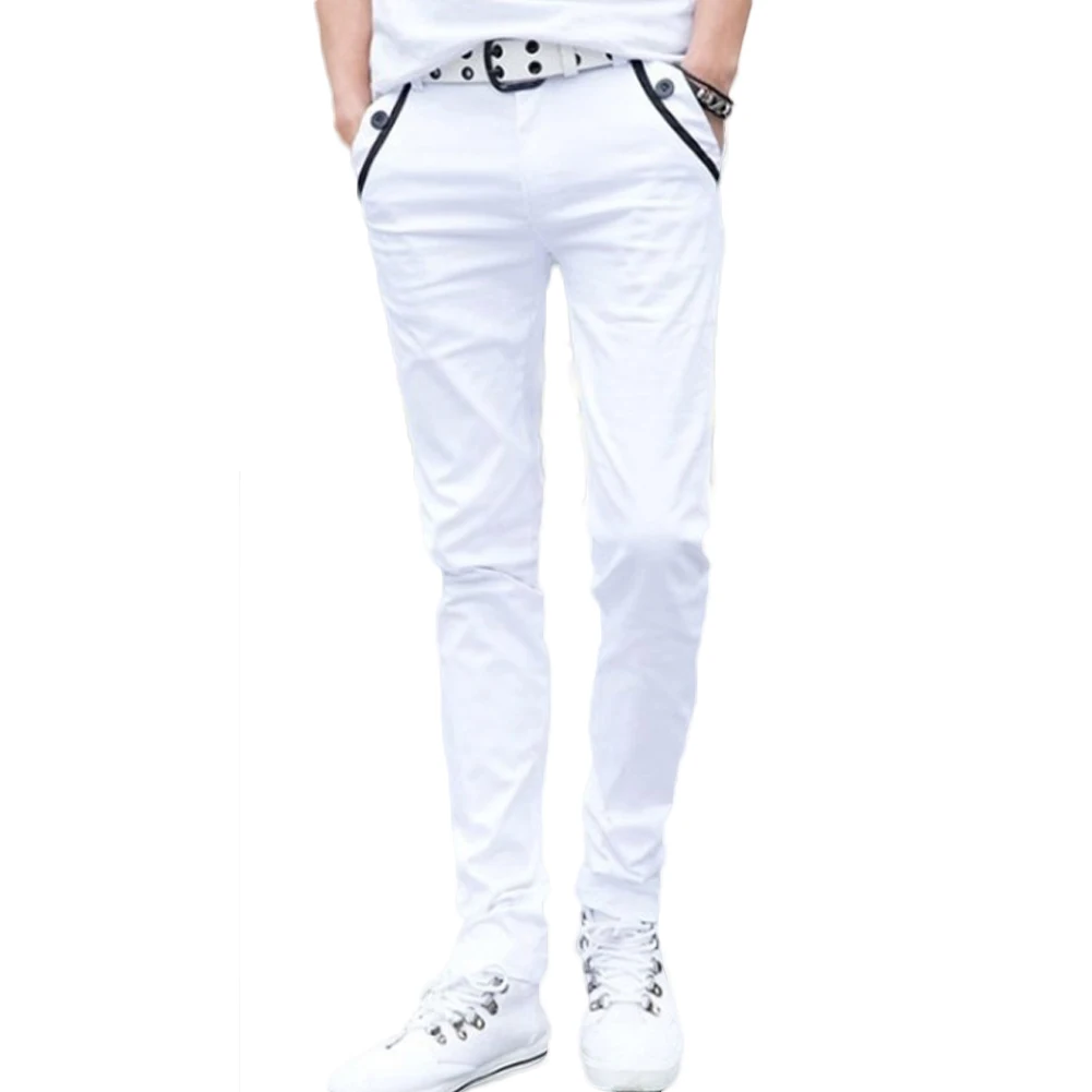 Мужские повседневные Однотонные эластичные длинные брюки S-lim, прямые брюки с карманами