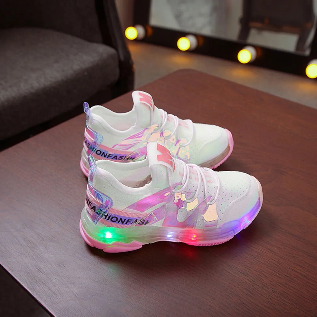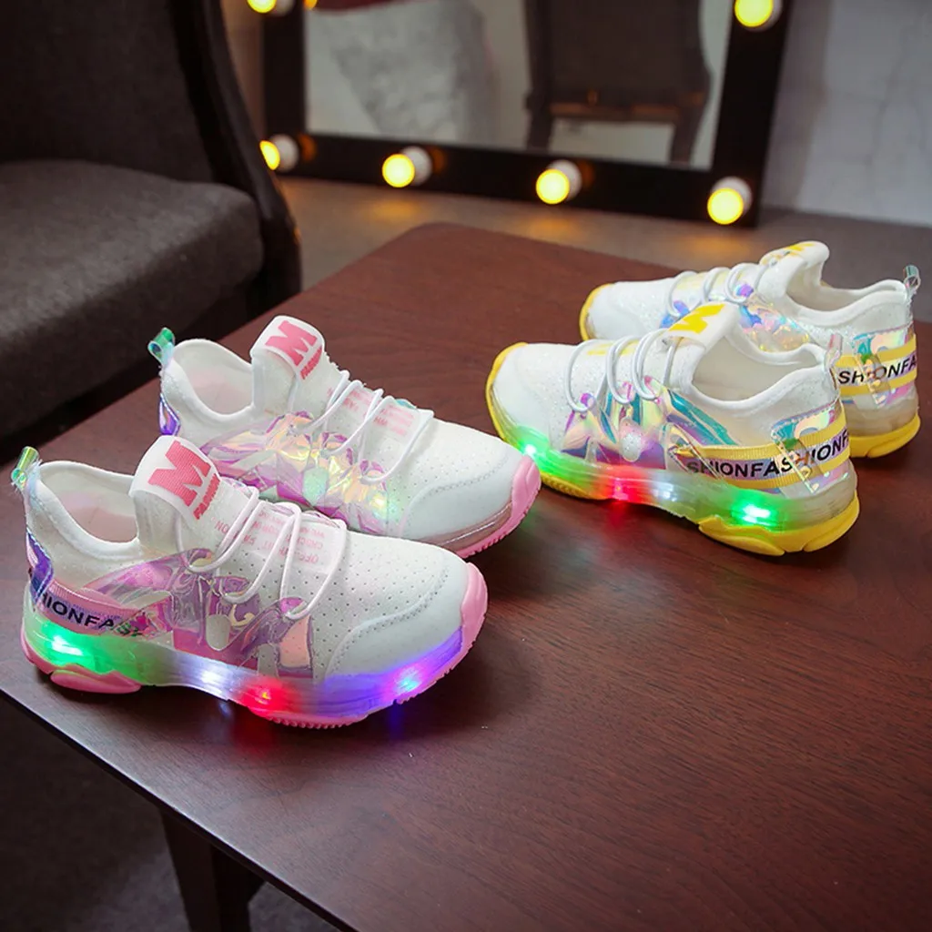 Детские сетчатые светящиеся спортивные кроссовки с буквенным принтом для мальчиков и девочек