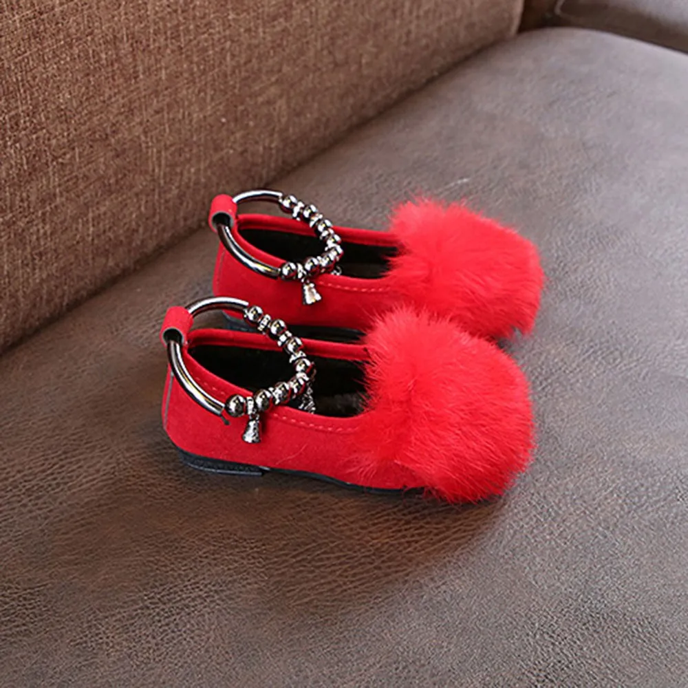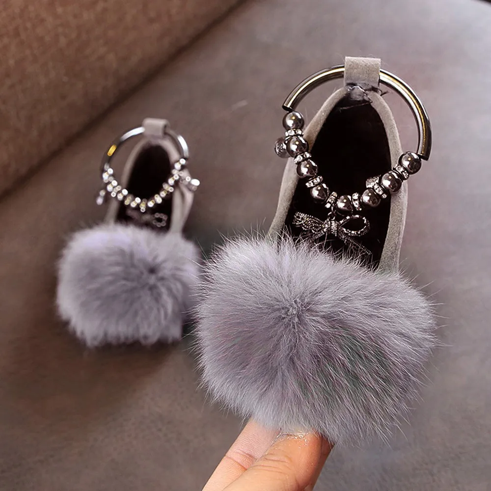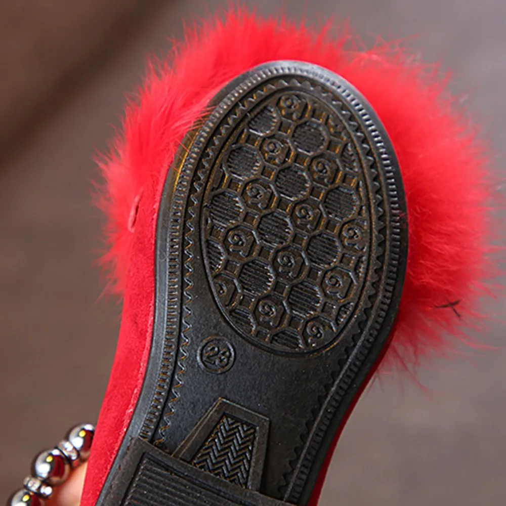 Детская теплая обувь из флока с пушистым бантом для маленьких девочек; Студенческая обувь принцессы