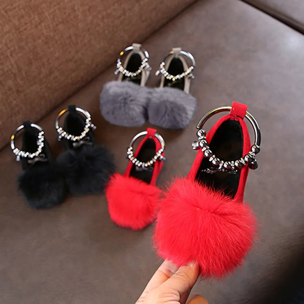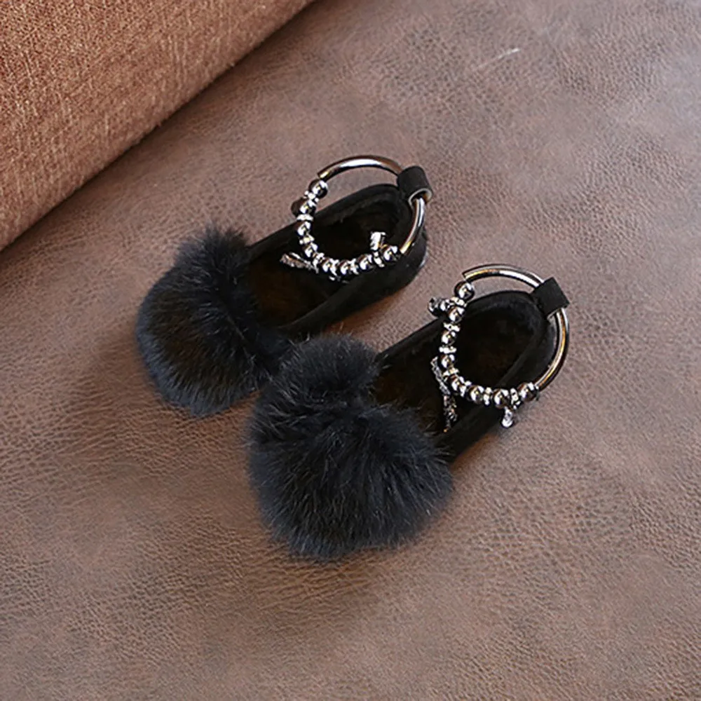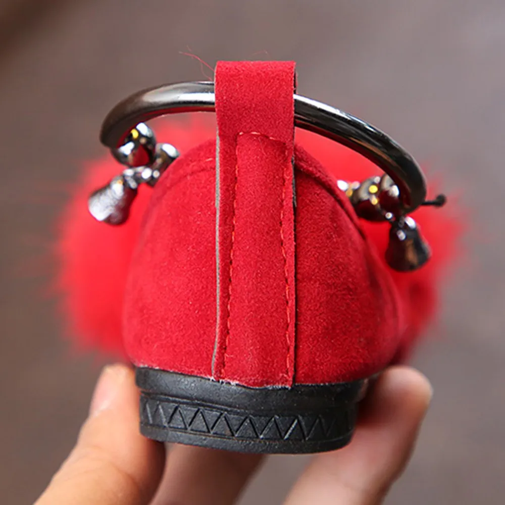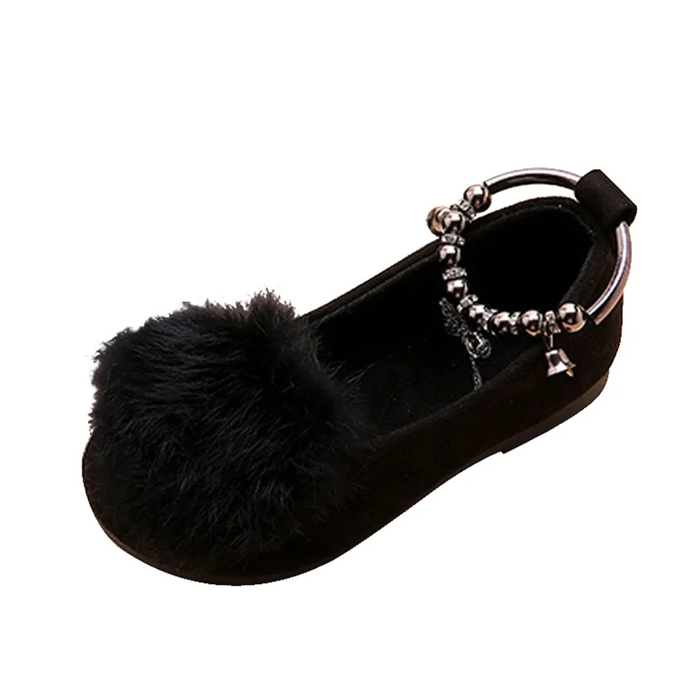 Детская теплая обувь из флока с пушистым бантом для маленьких девочек; Студенческая обувь принцессы