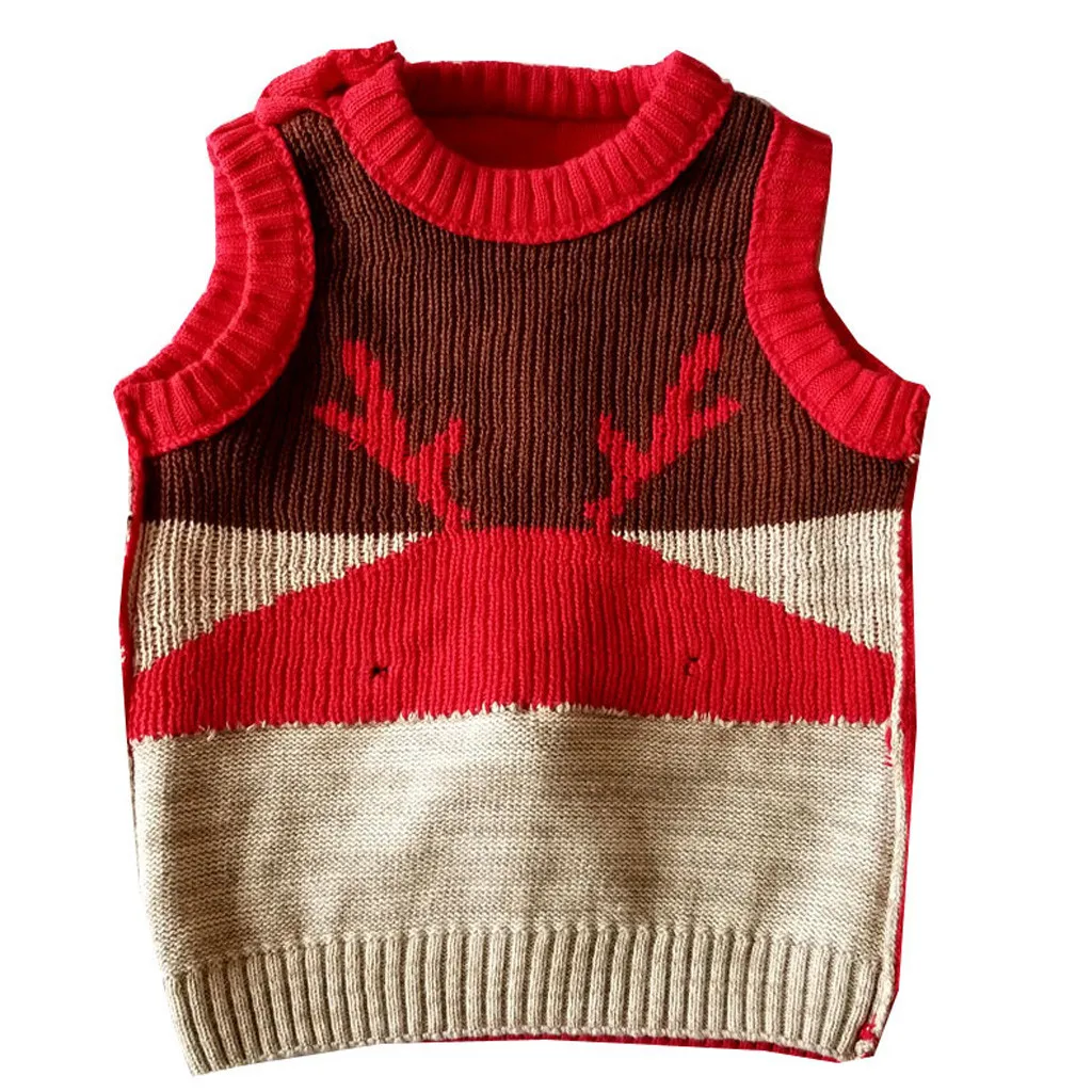 Детский зимний свитер с рождественским оленем для мальчиков и девочек, вязаный теплый жилет
