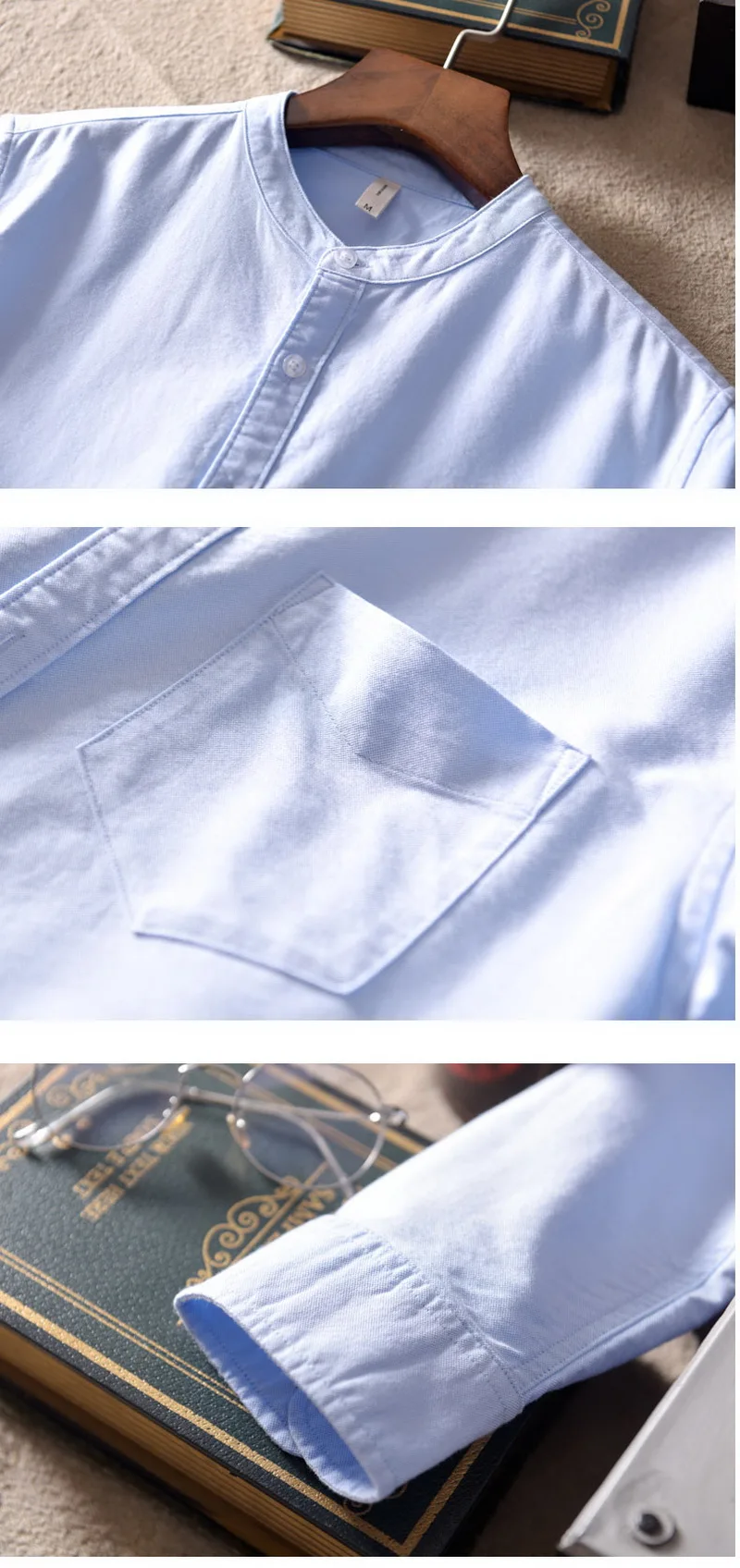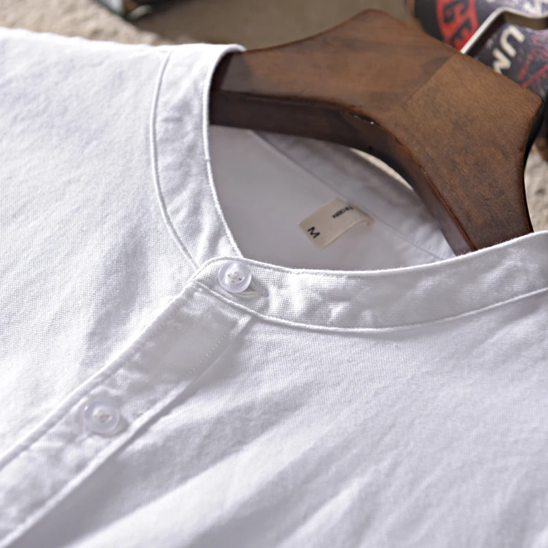 Новая стильная итальянская брендовая белая мужская рубашка с длинным рукавом, модные рубашки для мужчин с воротником-стойкой, однотонная мужская хлопковая рубашка, Мужская сорочка